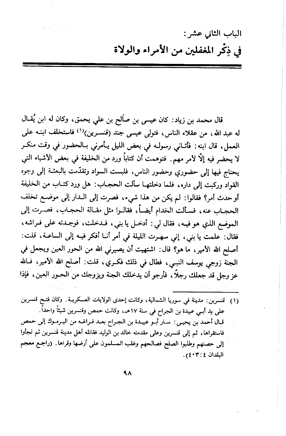 في ذكر المغفلين من الأمراء والولاة