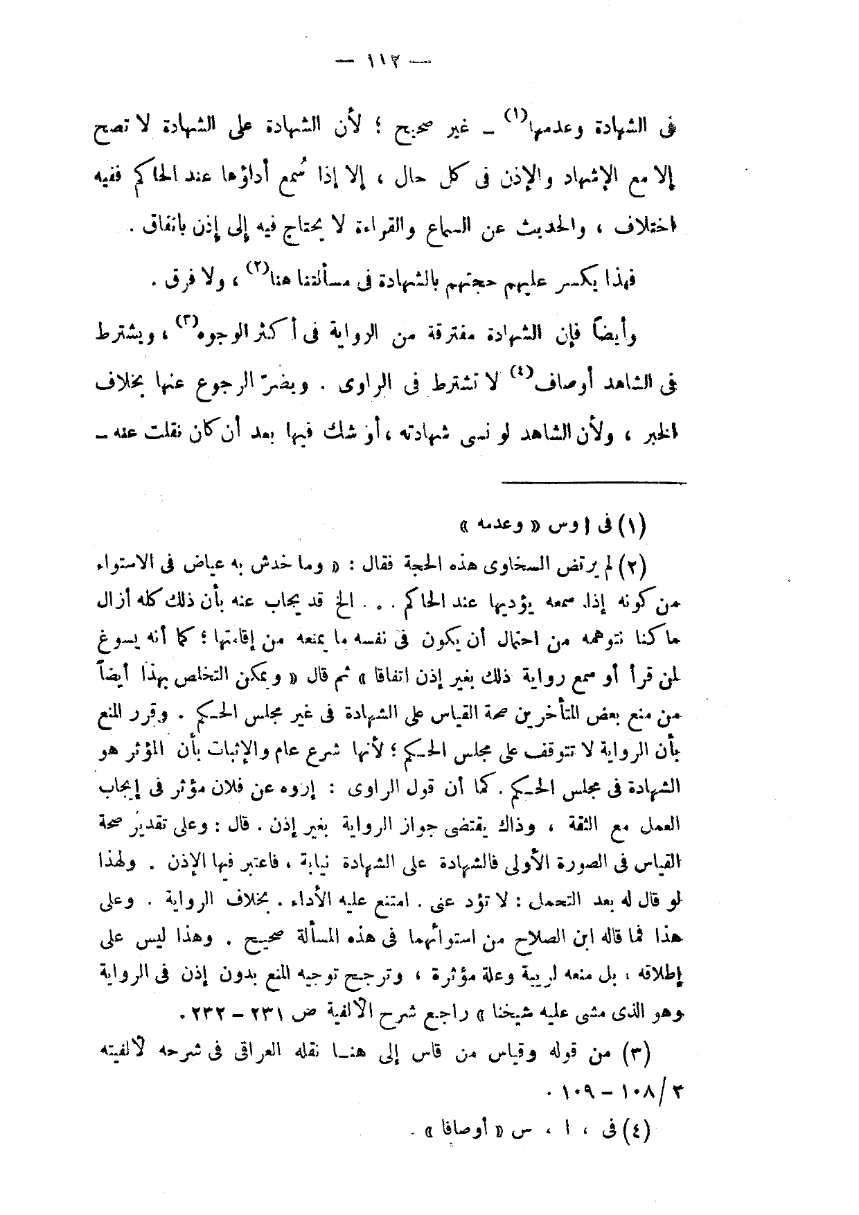 فِي الشَّهَادَةِ وَعَدَمِهَا غَيْرُ صَحِيحٍ لِأَنَّ الشَّهَادَةَ عَلَى الشَّهَادَةِ لَا تَصِحُّ إِلَّا مَعَ الْأَشْهَادِ وَالْإِذْنُ فِي كُلِّ حَالٍ إِلَّا إِذَا سُمِعَ أَدَاؤُهَا عِنْدَ الْحَاكِمِ فَفِيهِ اخْتِلَافٌ وَالْحَدِيثُ عَنِ السَّمَاعِ وَالْقِرَاءَةِ لَا يَحْتَاجُ فِيهِ إِلَى إِذْنٍ بِاتِّفَاقٍ