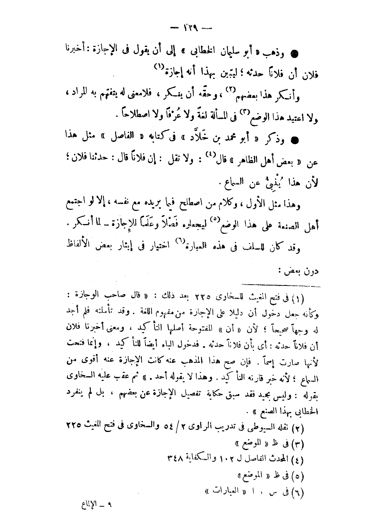 وَذَهَبَ أَبُو سُلَيْمَانَ الْخَطَّابِيُّ إِلَى أَنْ يَقُولَ فِي الْإِجَازَةِ أَخْبَرَنَا فُلَانٌ أَنَّ فُلَانًا حَدَّثَهُ لِيُبَيِّنَ بِهَذَا أَنَّهُ إِجَازَةٌ