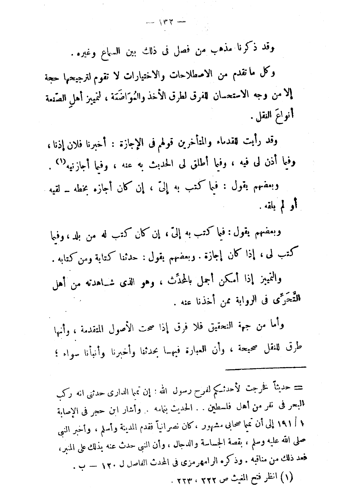 وَقَدْ رَأَيْتُ لِلْقُدَمَاءِ وَالْمُتَأَخِّرِينَ قَوْلَهُمْ فِي الْإِجَازَةِ أَخْبَرَنَا فُلَانٌ إِذْنًا وَفِيمَا أَذِنَ لِي فِيهِ وَفِيمَا أَطْلَقَ لِي الْحَدِيثَ بِهِ عَنْهُ وَفِيمَا أَجَازَنِيهُ