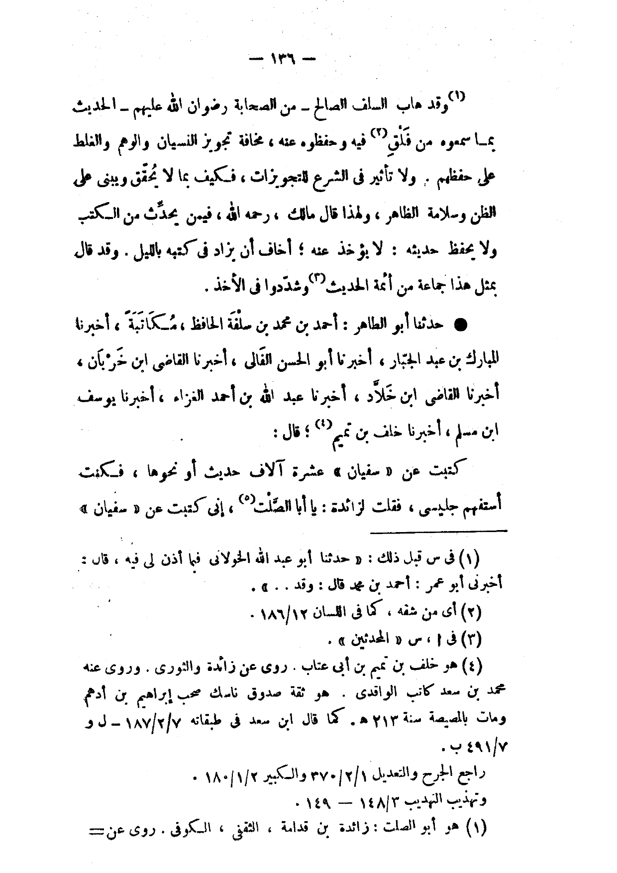وَقَدْ هَابَ السَّلَفُ الصَّالِحُ مِنَ الصَّحَابَةِ رِضْوَانُ اللَّهِ عَلَيْهِمْ الْحَدِيثَ بِمَا سَمِعُوهُ مِنْ فَلْقِ فِيهِ وَحَفِظُوهُ عَنْهُ مَخَافَةَ تَجْوِيزِ النَّسْيَانِ وَالْوَهْمِ وَالْغَلَطِ عَلَى حِفْظِهِمْ وَلَا تَأْثِيرَ فِي الشَّرْعِ لِلتَّجْوِيزَاتِ فَكَيْفَ بِمَا لَا يُحَقَّقُ وَيُبْنَى عَلَى الظَّنِّ وَسَلَامَةِ الظَّاهِرِ وَلِهَذَا قَالَ مَالِكٌ رَحِمَهُ اللَّهُ فِيمَنْ يُحَدِّثُ مِنَ الْكُتُبِ وَلَا يَحْفَظُ حَدِيثَهُ لَا يُؤْخَذُ عَنْهُ أَخَافُ أَنْ يُزَادَ فِي كُتُبِهِ بِاللَّيْلِ وَقَدْ قَالَ بِمِثْلِ هَذَا جَمَاعَةٌ مِنْ أَئِمَّةِ الْحَدِيثِ وَشَدَّدُوا فِي الْأَخْذِ