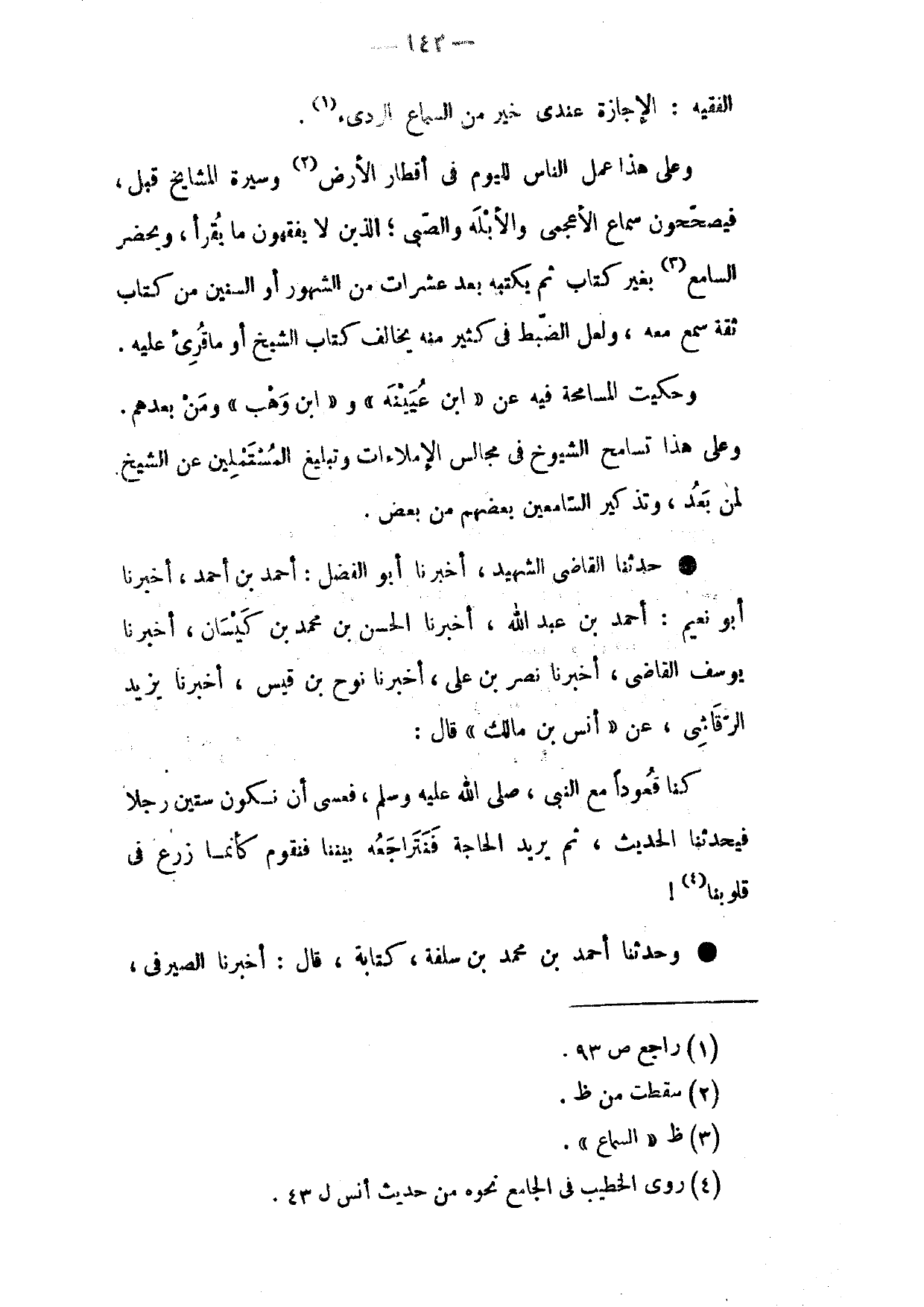 وَحُكِيَتِ الْمُسَامَحَةُ فِيهِ عَنِ ابْنِ عُيَيْنَةَ وَابْنِ وَهْبٍ وَمَنْ بَعْدِهِمْ وَعَلَى هَذَا تَسَامَحَ الشُّيُوخُ فِي مَجَالِسِ الْإِمْلَاءَاتِ وَتَبْلِيغِ الْمُسْتَمْلِينَ عَنِ الشَّيْخِ لِمَنْ بَعْدُ وَتَذْكِيرِ السَّامِعِينَ بَعْضِهِمْ مِنْ بَعْضٍ