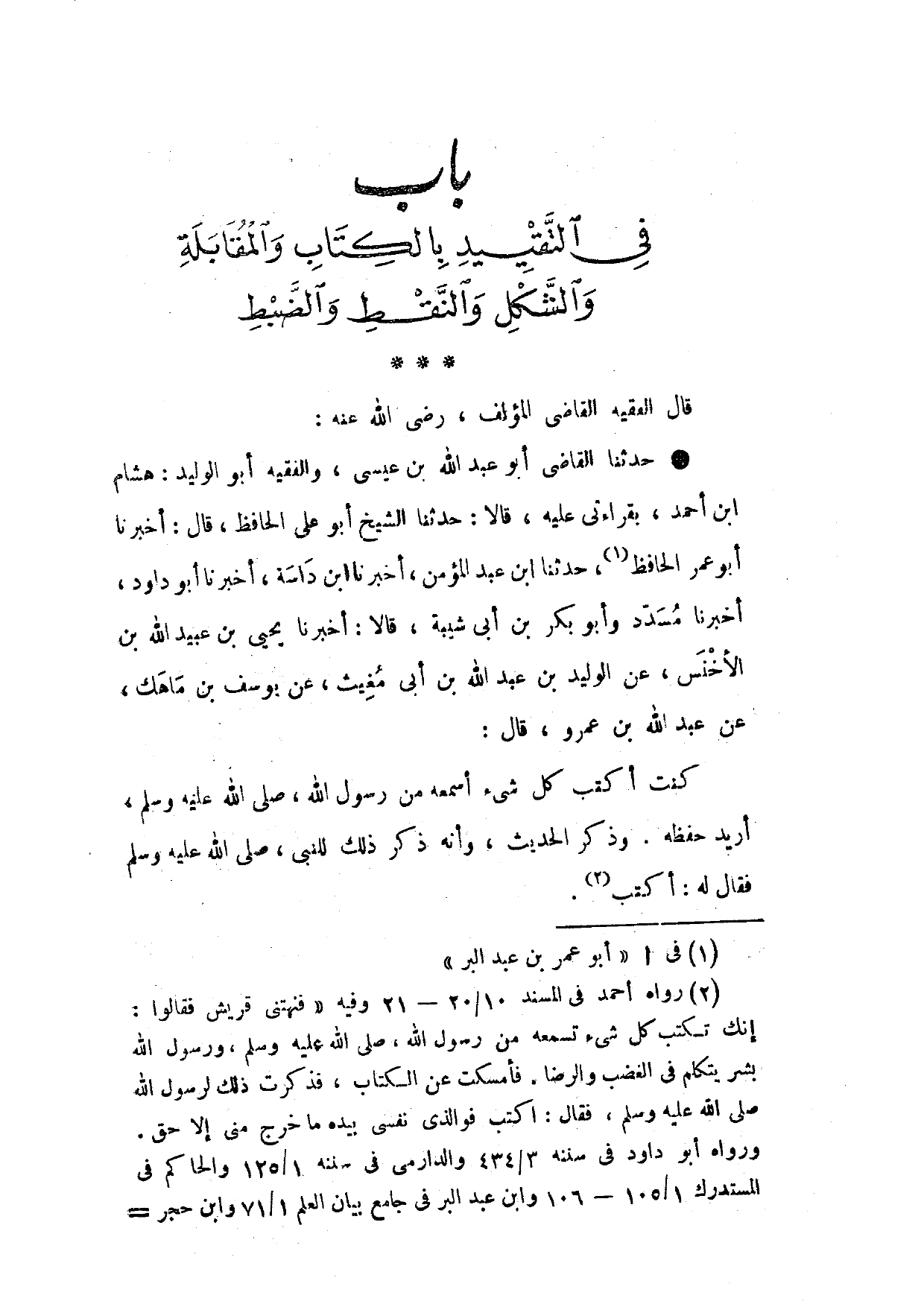 - صَلَّى اللَّهُ عَلَيْهِ وَسَلَّم َ - بَابٌ فِي التَّقْيِيدِ بِالْكِتَابِ وَالْمُقَابَلَةِ والشكل والنقط والضبط - صَلَّى اللَّهُ عَلَيْهِ وَسَلَّم َ -