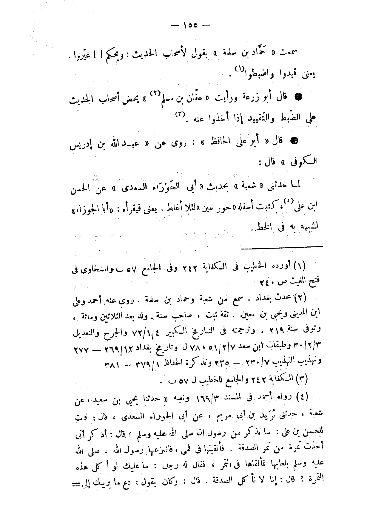 سَمِعْتُ حَمَّادَ بْنَ سَلَمَةَ يَقُولُ لِأَصْحَابِ الْحَدِيثِ وَيْحَكُمْ غَيِّرُوا يَعْنِي قَيِّدُوا وَاضْبِطُوا