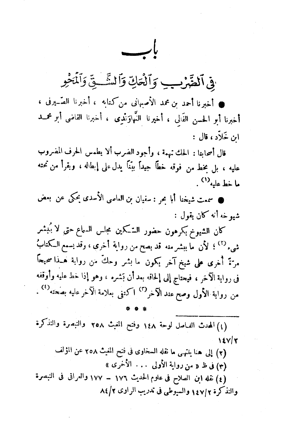 كَانَ الشُّيُوخُ يَكْرَهُونَ حُضُورَ السُّكَيْنِ مَجْلِسَ السماع حَتَّى لَا يبشر شَيْء لِأَنَّ مَا يَبْشُرُ مِنْهُ قَدْ يَصِحُّ مِنْ رِوَايَةٍ أُخْرَى وَقَدْ يُسْمَعُ الْكِتَابُ مَرَّةً أُخْرَى عَلَى شَيْخٍ آخَرَ يَكُونُ مَا بَشَرَ وَحَكَّ مِنْ رِوَايَةِ هَذَا صَحِيحًا فِي رِوَايَةِ الْآخَرِ فَيْحَتَاجُ إِلَى إِلْحَاقِهِ بَعْدَ أَنْ بَشَرَهُ وَهُوَ إِذَا خَطَّ عَلَيْهِ وَأَوْقَفَهُ مِنْ رِوَايَةِ الْأَوَّلِ وَصَحَّ عِنْدَ الْآخَرِ اكْتَفَى بِعَلَامَةِ الْآخَرِ عَلَيْهِ بِصِحَّتِهِ