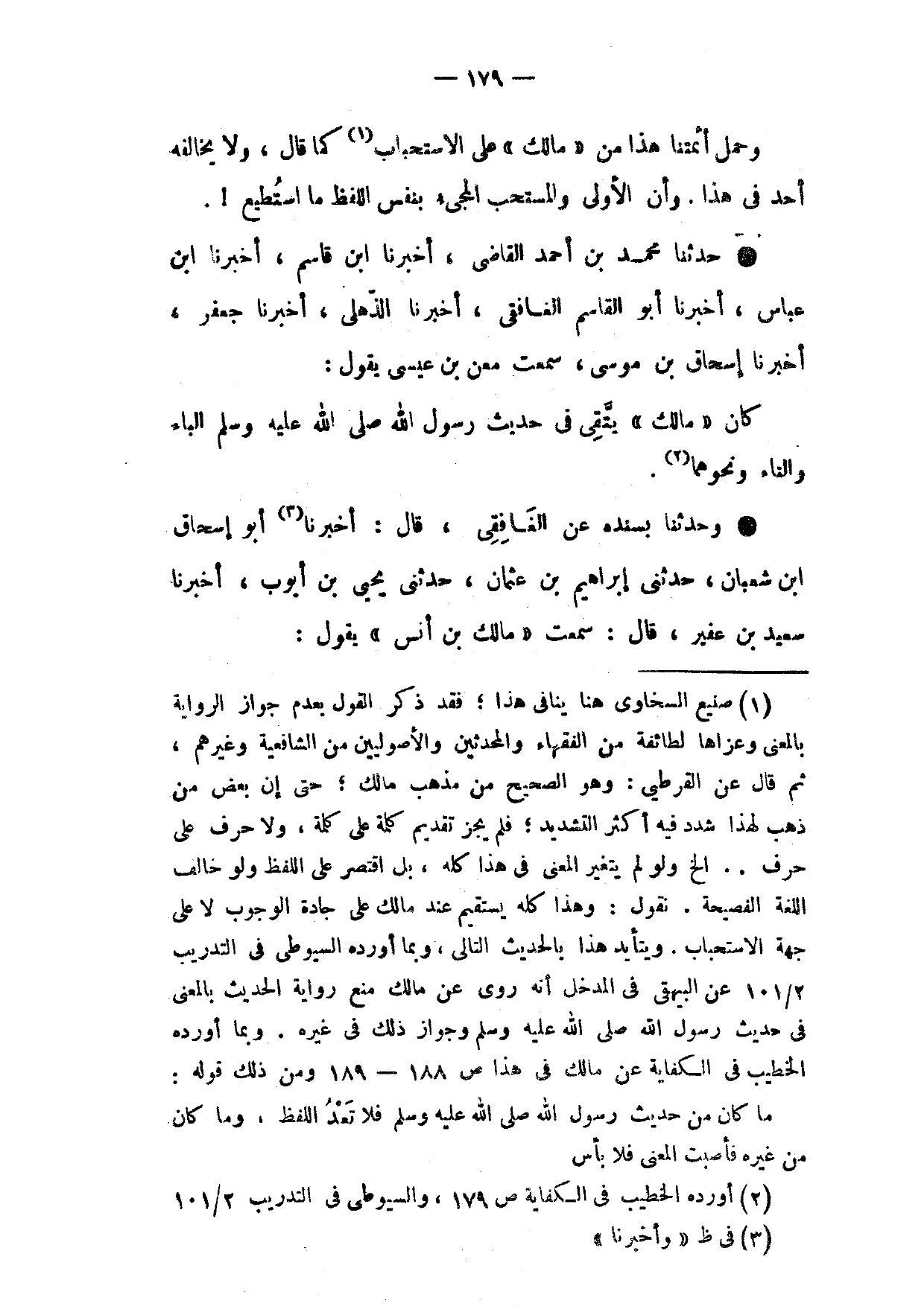 وَحَمَلَ أَئِمَّتُنَا هَذَا مِنْ مَالِكٍ عَلَى الِاسْتِحْبَابِ كَمَا قَالَ وَلَا يُخَالِفُهُ أَحَدٌ فِي هَذَا وَأَنَّ الْأَوْلَى وَالْمُسْتَحَبَّ الْمَجِيءِ بِنَفْسِ اللَّفْظِ مَا اسْتُطِيعَ