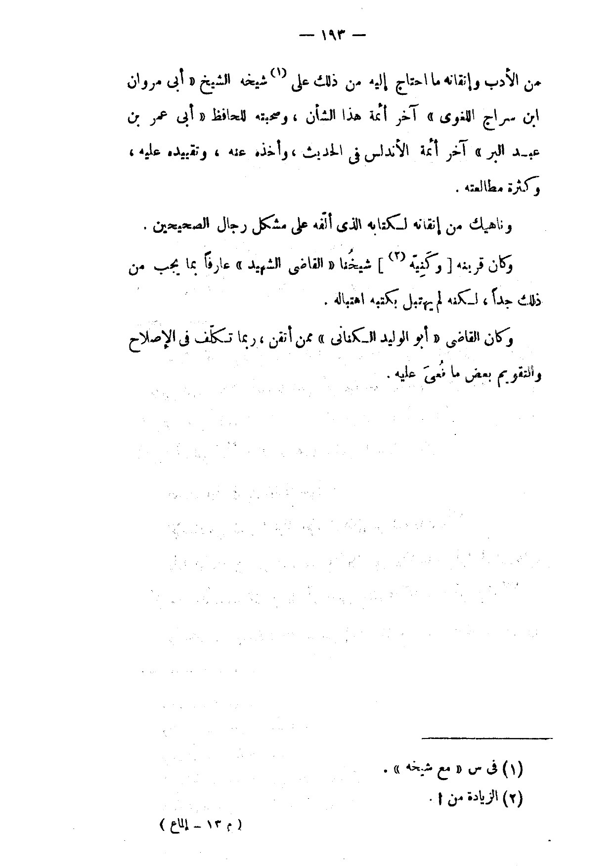 وَكَانَ الْقَاضِي أَبُو الْوَلِيدِ الْكِنَانِيُّ مِمَّنْ أَتْقَنَ رُبَّمَا تَكَلَّفَ فِي الْإِصْلَاحِ وَالتَّقْوِيمِ بَعْضَ مَا نُعِيَ عَلَيْهِ