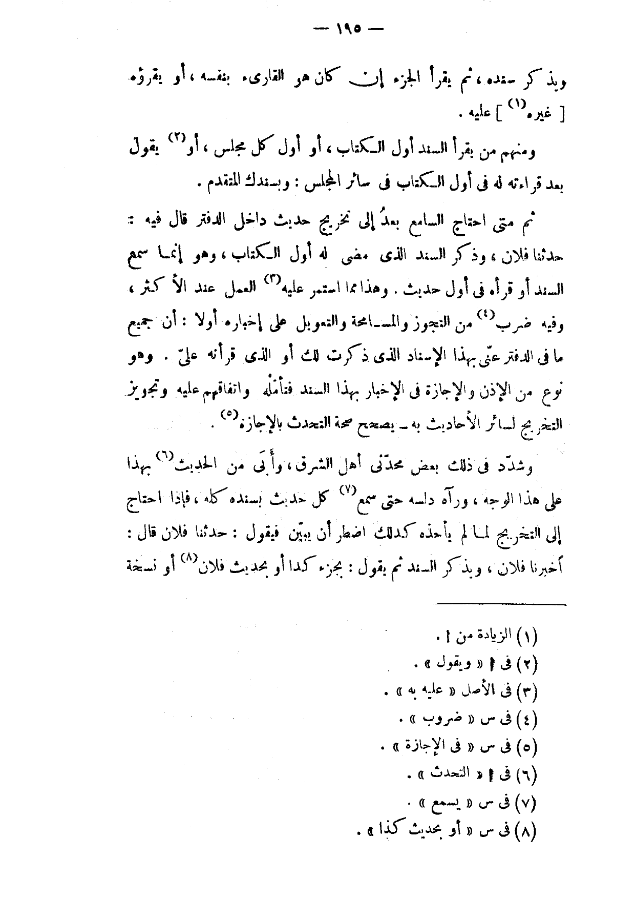 وَمِنْهُمْ مَنْ يَقْرَأُ السَّنَدَ أَوَّلَ الْكِتَابِ أَوْ أَوَّلَ كُلِّ مَجْلِسٍ أَوْ يَقُولُ بَعْدَ قِرَاءَتِهِ لَهُ فِي أَوَّلِ الْكِتَابِ فِي سَائِرِ الْمَجْلِسِ وَبِسَنَدِكَ الْمُتَقَدِّمِ