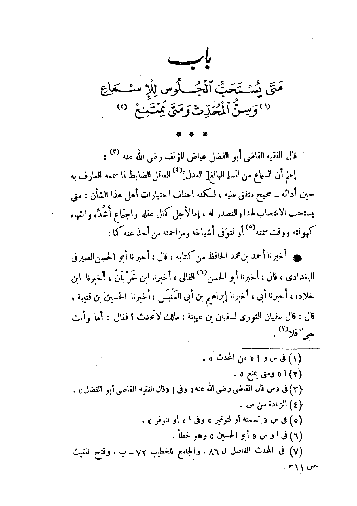 - صَلَّى اللَّهُ عَلَيْهِ وَسَلَّم َ - بَابُ مَتَى يُسْتَحَبُّ الْجُلُوسُ لِلْإِسْمَاعِ وَسِنُّ الْمُحَدِّثِ وَمَتَى يَمْتَنِعُ - صَلَّى اللَّهُ عَلَيْهِ وَسَلَّم َ -