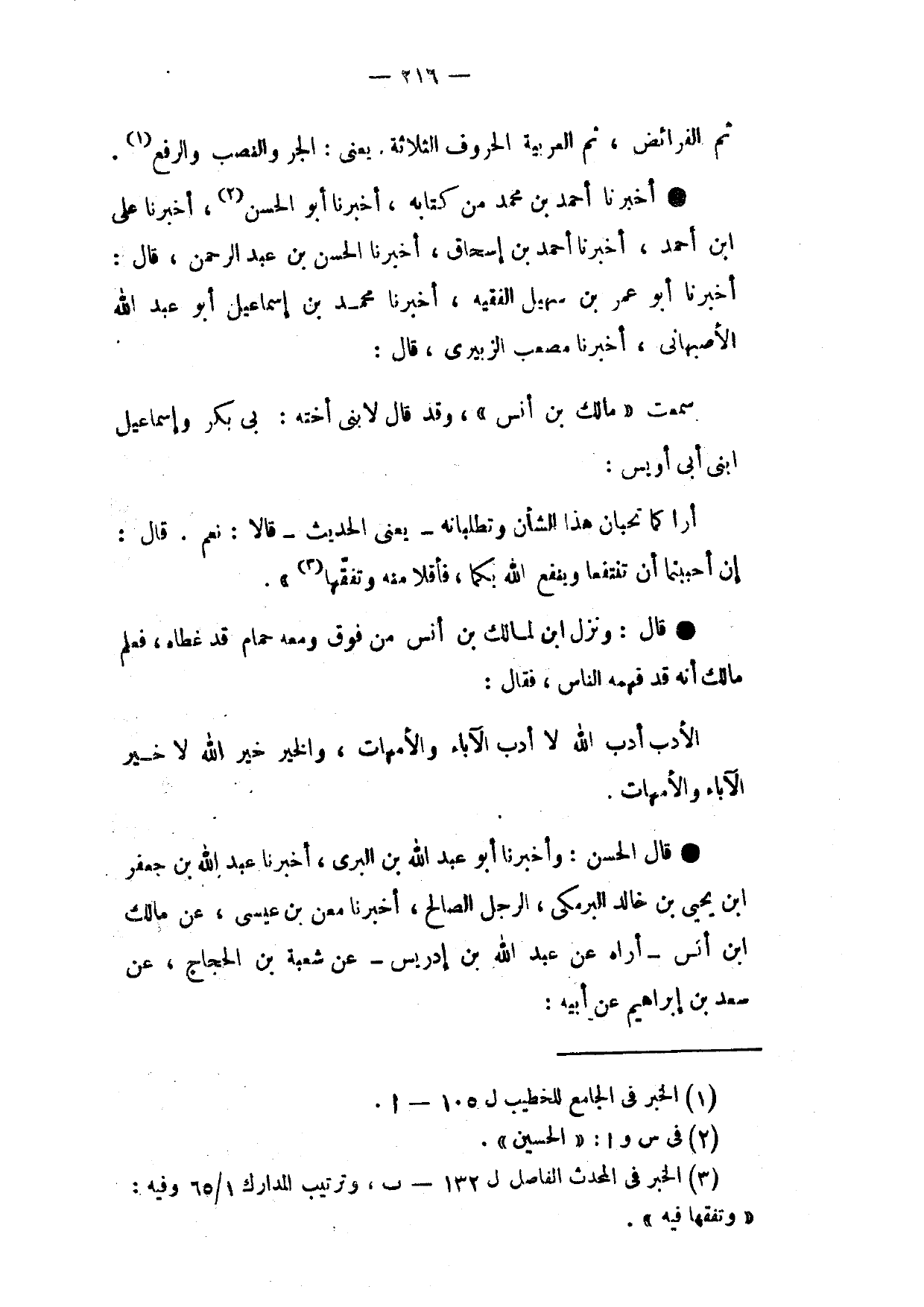قَالَ الْحَسَنُ وَأَخْبَرَنَا أَبُو عَبْدِ اللَّهِ بْنُ الْبُرِّيُّ أَخْبَرَنَا عَبْدُ اللَّهِ بْنُ جَعْفَرِ ابْن يَحْيَى بْنِ خَالِدٍ الْبَرْمَكِيُّ الرَّجُلُ الصَّالِحُ أَخْبَرَنَا مَعْنُ بْنُ عِيسَى عَن مَالك ابْن أَنَسٍ أَرَاهُ عَنْ عَبْدِ اللَّهِ بْنِ إِدْرِيسَ عَنْ شُعْبَةَ بْنِ الْحَجَّاجِ عَنْ سَعْدِ بْنِ إِبْرَاهِيمَ عَنْ أَبِيهِ