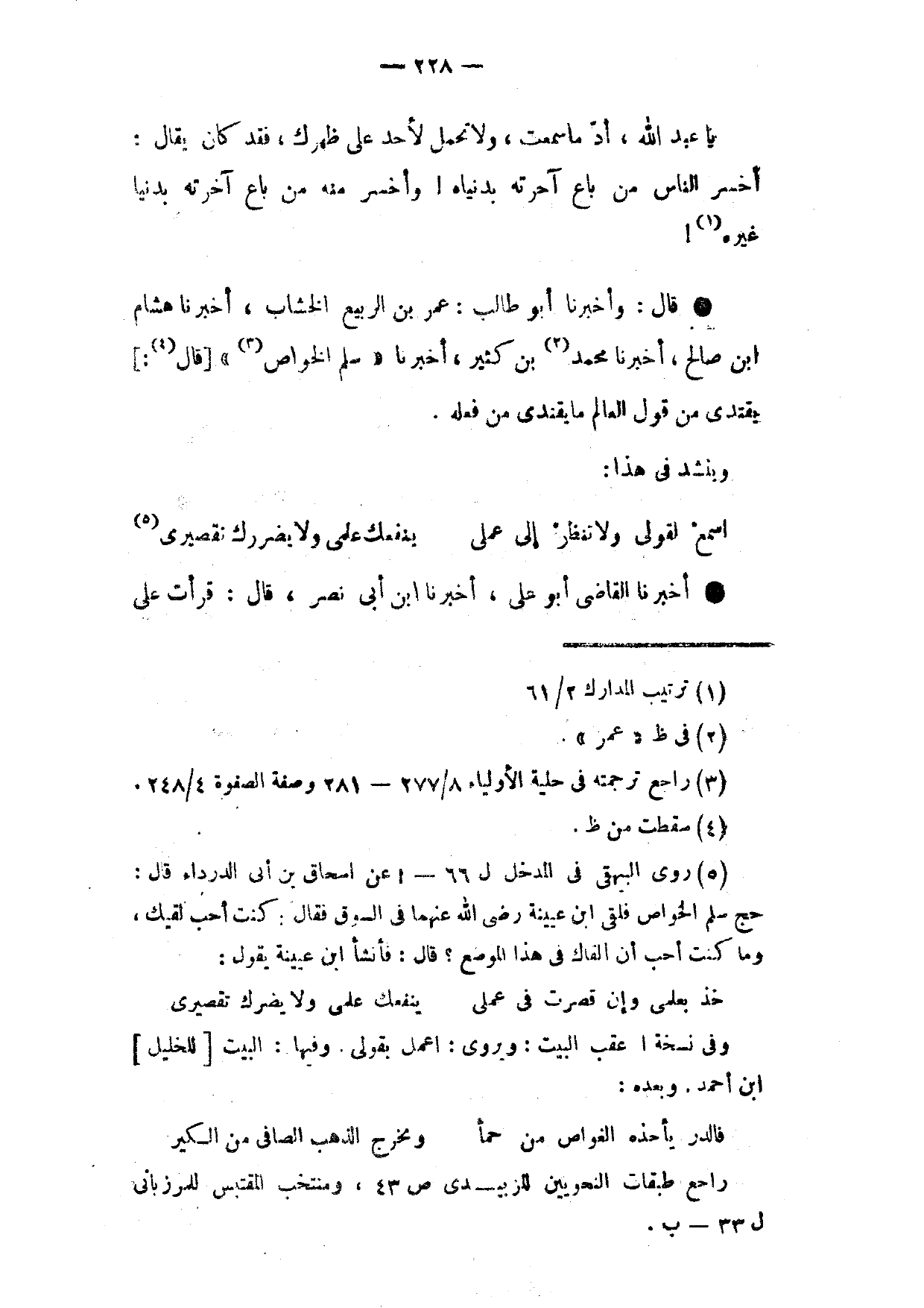 يَا عَبْدَ اللَّهِ أَدِ مَا سَمِعْتَ وَلَا تَحْمِلْ لِأَحَدٍ عَلَى ظَهْرِكَ فَقَدْ كَانَ يُقَالُ أَخْسَرُ النَّاسِ مَنْ بَاعَ آخِرَتَهُ بِدُنْيَاهُ وَأَخْسَرُ مِنْهُ مَنْ بَاعَ آخِرَتَهُ بِدُنْيَا غَيْرِهِ