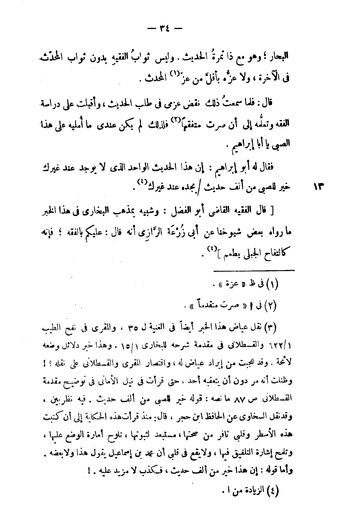 الْبِحَارِ وَهُوَ مَعَ ذَا ثَمَرَةُ الْحَدِيثِ وَلَيْسَ ثَوَابُ الْفَقِيهِ بِدُونَ ثَوَابِ الْمُحَدِّثِ فِي الْآخِرَةِ وَلَا عِزُّهُ بِأَقَلَّ مِنْ عِزِّ الْمُحَدِّثِ