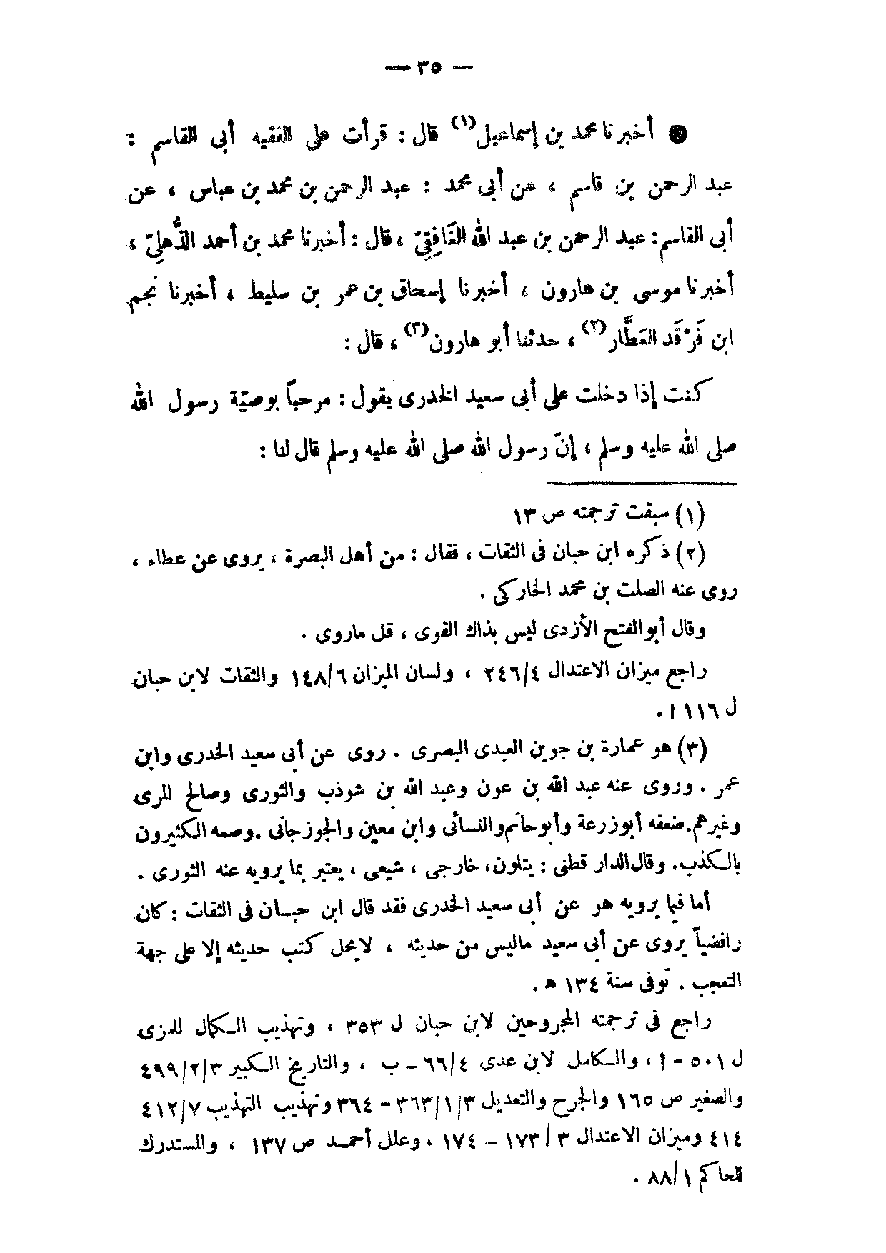 أَخْبَرَنَا مُحَمَّدُ بْنُ إِسْمَاعِيلَ قَالَ قَرَأْتُ عَلَى الْفَقِيهِ أَبِي الْقَاسِمِ عَبْدِ الرَّحْمَنِ بْنِ قَاسِمٍ عَنْ أَبِي مُحَمَّدٍ عَبْدِ الرَّحْمَنِ بْنِ مُحَمَّدِ بْنِ عَبَّاسٍ عَنْ أَبِي الْقَاسِمِ عَبْدِ الرَّحْمَنِ بْنِ عَبْدِ اللَّهِ الْغَافِقِيِّ قَالَ أَخْبَرَنَا مُحَمَّدُ بْنُ أَحْمَدَ الذُّهْلِيُّ أَخْبَرَنَا مُوسَى بْنُ هَارُونَ أَخْبَرَنَا إِسْحَاقُ بْنُ عُمَرَ بْنِ سَلِيطٍ أَخْبَرَنَا نَجْمُ ابْن فَرْقَدٍ الْعَطَّارُ حَدَّثَنَا أَبُو هَارُونَ قَالَ