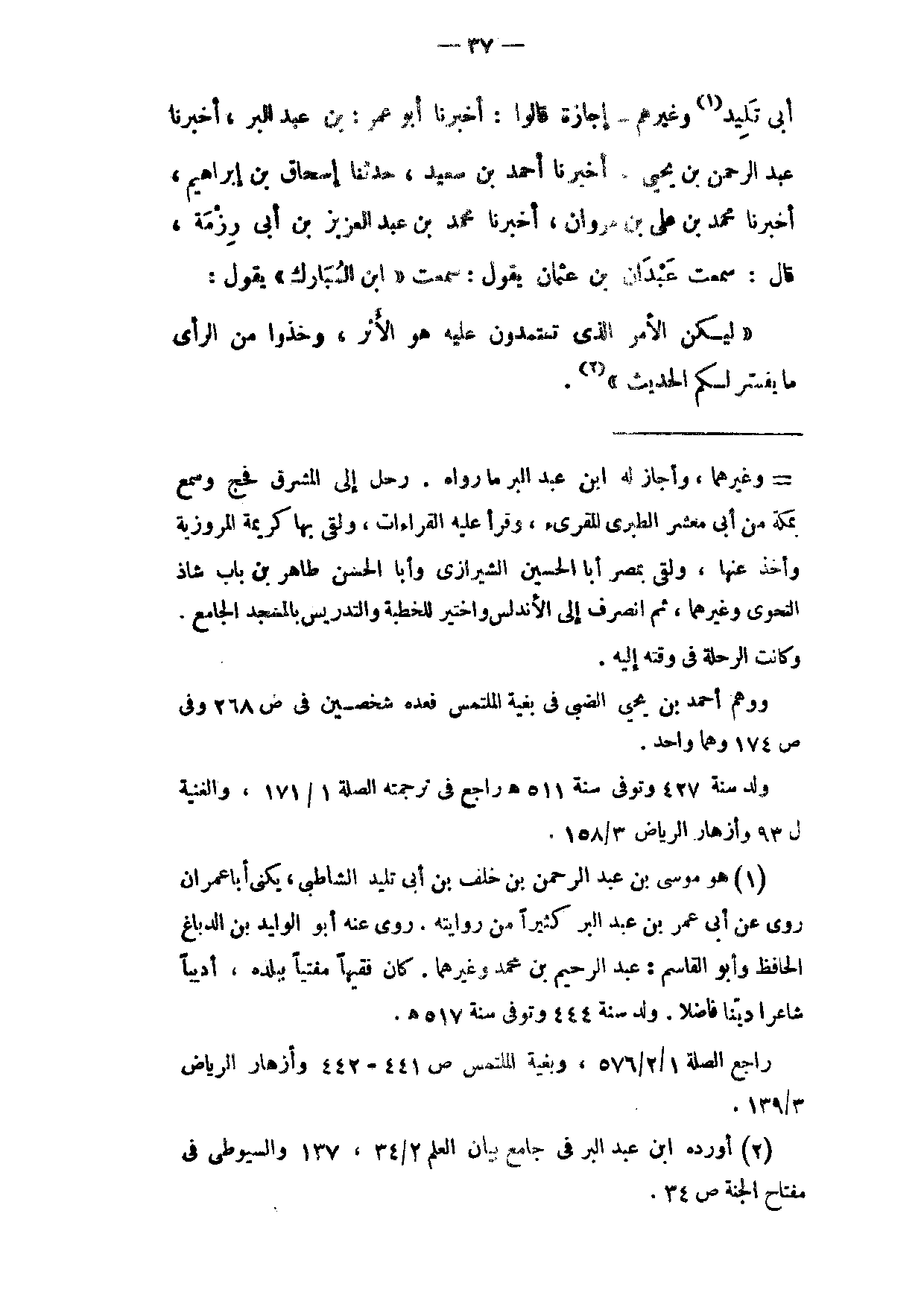 أَبِي تَلِيدٍ وَغَيْرُهُمْ إِجَازَةً قَالُوا أَخْبَرَنَا أَبُو عُمَرَ بْنُ عَبْدِ الْبَرِّ أَخْبَرَنَا عَبْدُ الرَّحْمَنِ بْنُ يَحْيَى أَخْبَرَنَا أَحْمَدُ بْنُ سَعِيدٍ حَدَّثَنَا إِسْحَاقُ بْنُ إِبْرَاهِيمَ أَخْبَرَنَا مُحَمَّدُ بْنُ عَلِيِّ بْنِ مَرْوَانَ أَخْبَرَنَا مُحَمَّدُ بْنُ عَبْدِ الْعَزِيزِ بْنِ أَبِي رِزْمَةَ قَالَ سَمِعْتُ عَبْدَانَ بْنَ عُثْمَانَ يَقُولُ سَمِعْتُ ابْنَ الْمُبَارَكِ يَقُولُ
