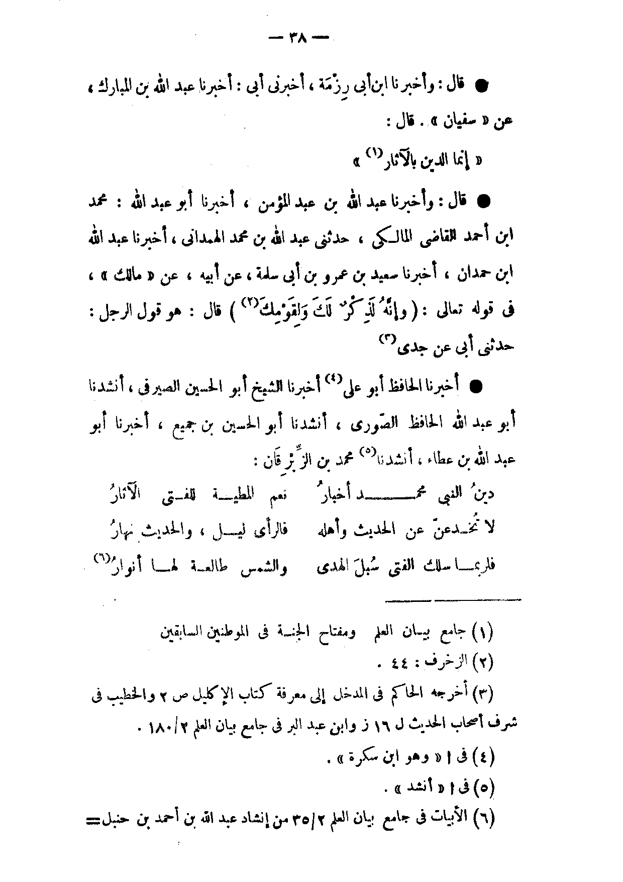 (دِينُ النَّبِيِّ مُحَمَّدٍ أَخْبَارُ ... نِعْمَ الْمَطِيَّةُ لِلْفَتَى الْآثَارُ)