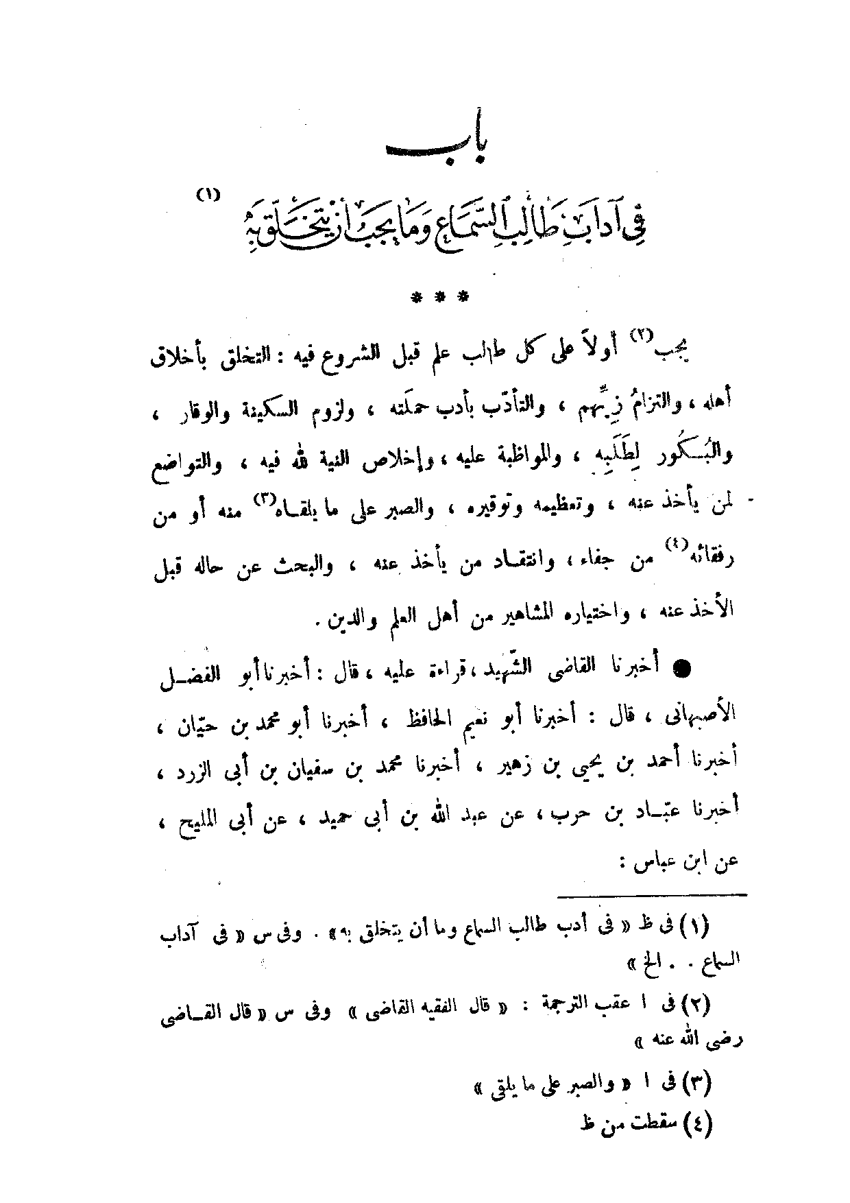 - صَلَّى اللَّهُ عَلَيْهِ وَسَلَّم َ - بَابٌ فِي آدَابِ طَالِبِ السَّمَاعِ وَمَا يَجِبُ أَنْ يَتَخَلَّقَ بِهِ - صَلَّى اللَّهُ عَلَيْهِ وَسَلَّم َ -