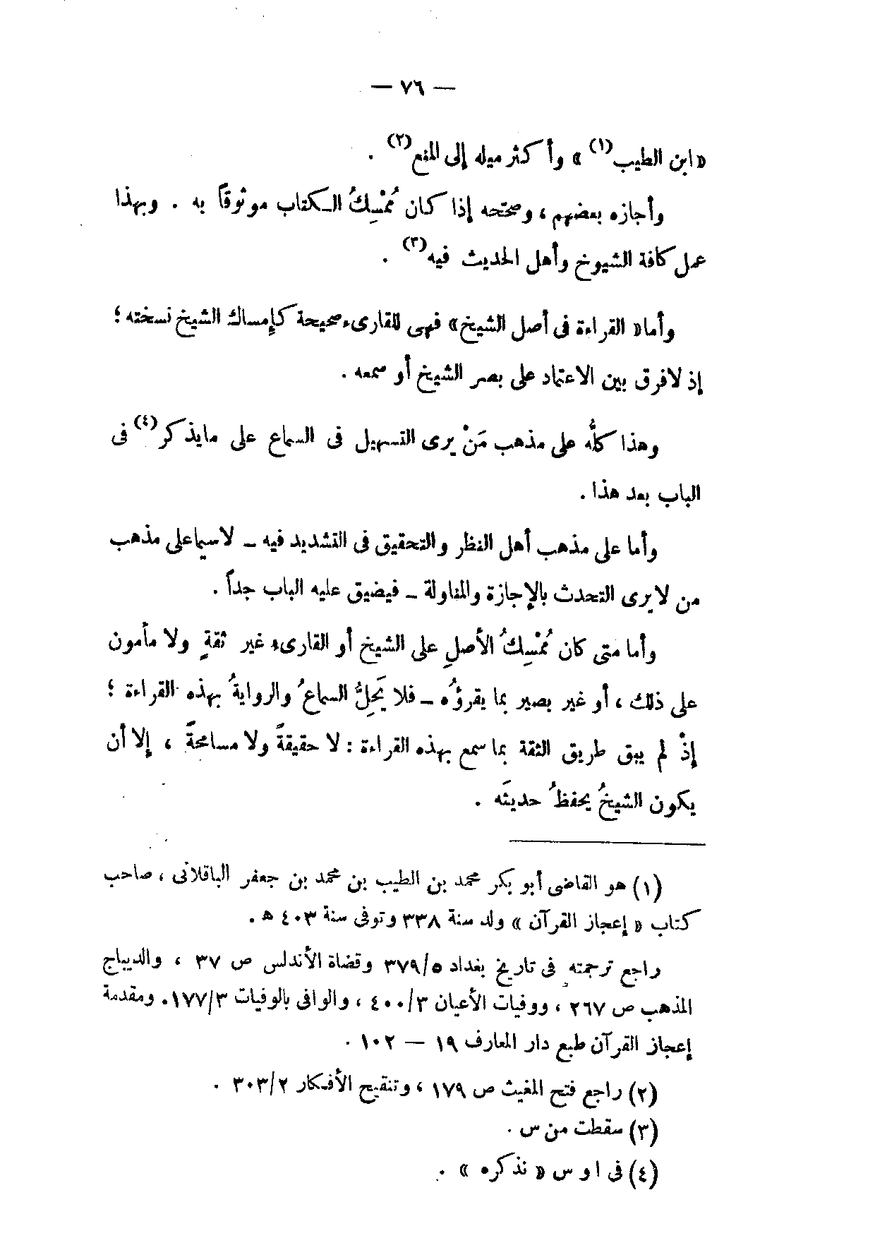 وَأَمَّا عَلَى مَذْهَبِ أَهْلِ النَّظَرِ وَالتَّحْقِيقِ فِي التَّشْدِيدِ فِيهِ لَا سِيَّمَا عَلَى مَذْهَبِ مَنْ لَا يَرَى التَّحَدُّثَ بِالْإِجَازَةِ وَالْمُنَاوَلَةِ فَيُضَيِّقُ عَلَيْهِ الْبَابَ جِدًّا