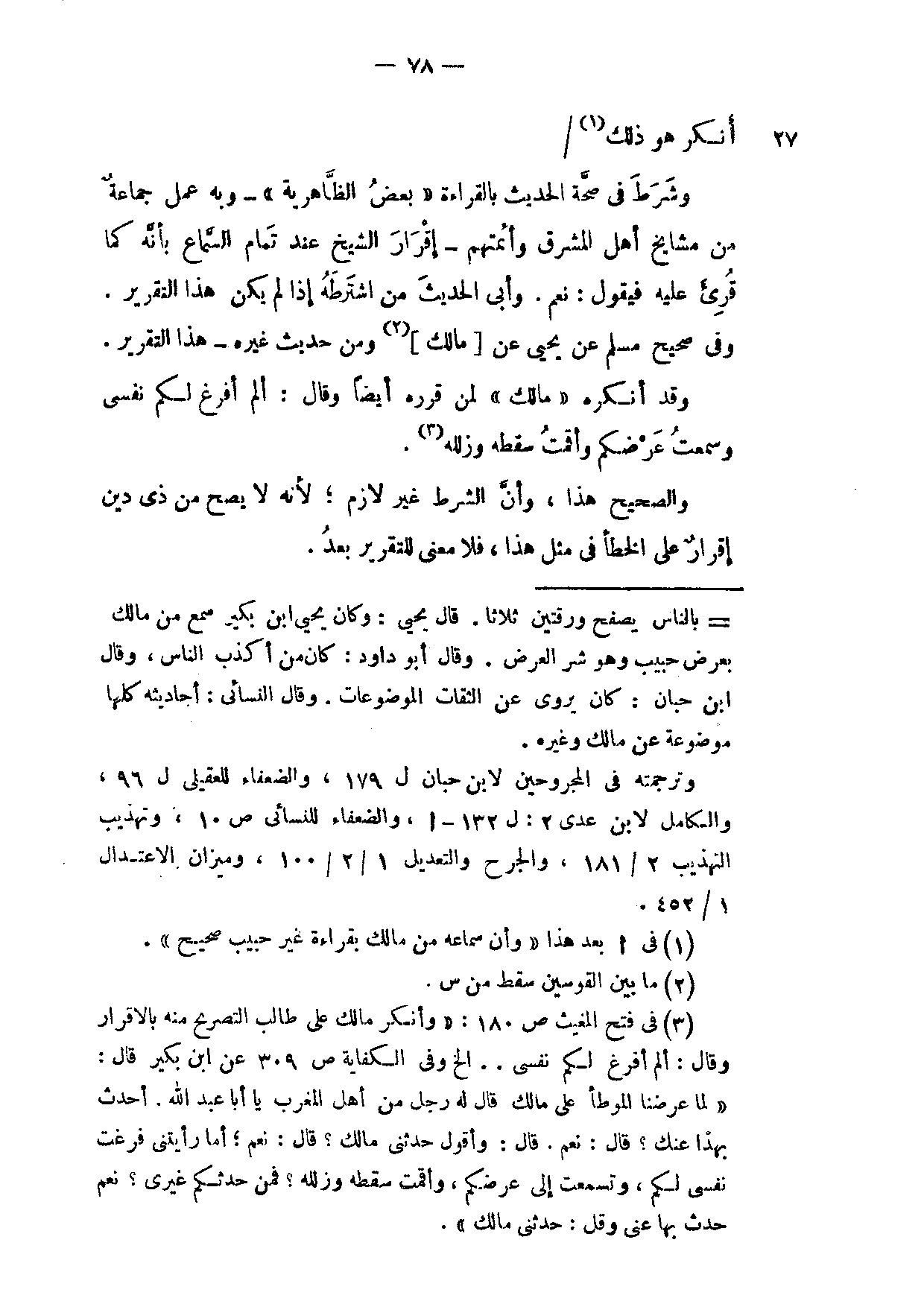 وَشَرَطَ فِي صِحَّةِ الْحَدِيثِ بِالْقِرَاءَةِ بَعْضُ الظَّاهِرِيَّةِ وَبِهِ عَمِلَ جَمَاعَةٌ مِنْ مَشَايِخِ أَهْلِ الْمَشْرِقِ وَأَئِمَّتُهُمْ إِقْرَارَ الشَّيْخِ عِنْدَ تَمَامِ السَّمَاعِ بِأَنَّهُ كَمَا قرىء عَلَيْهِ فَيَقُولُ نَعَمْ وَأَبَى الْحَدِيثَ مَنِ اشْتَرَطَهُ إِذَا لَمْ يَكُنْ هَذَا التَّقْرِيرُ وَفِي صَحِيحِ مُسْلِمٍ عَنْ يَحْيَى عَنْ مَالِكٍ وَمِنْ حَدِيثِ غَيْرِهِ هَذَا التَّقْرِيرُ