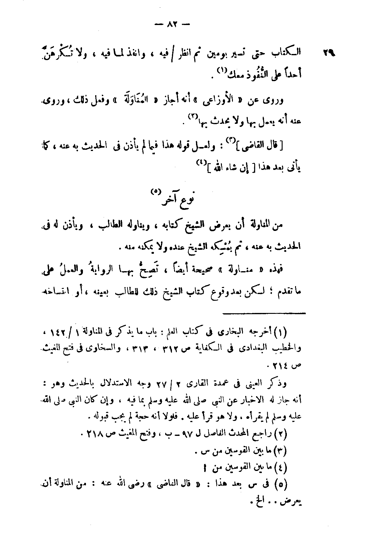 وَرُوِيَ عَنِ الْأَوْزَاعِيِّ أَنَّهُ أَجَازَ الْمُنَاوَلَةَ وَفَعَلَ ذَلِكَ وَرُوِيَ عَنْهُ أَنَّهُ يَعْمَلُ بِهَا وَلَا يُحَدِّثُ بِهَا
