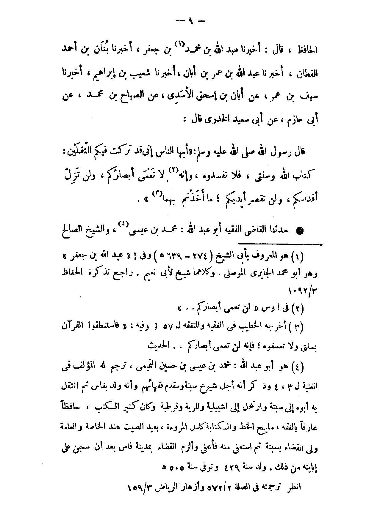 حَدَّثَنَا الْقَاضِي الْفَقِيهُ أَبُو عَبْدِ اللَّهِ مُحَمَّدُ بْنُ عِيسَى وَالشَّيْخُ الصَّالِحُ