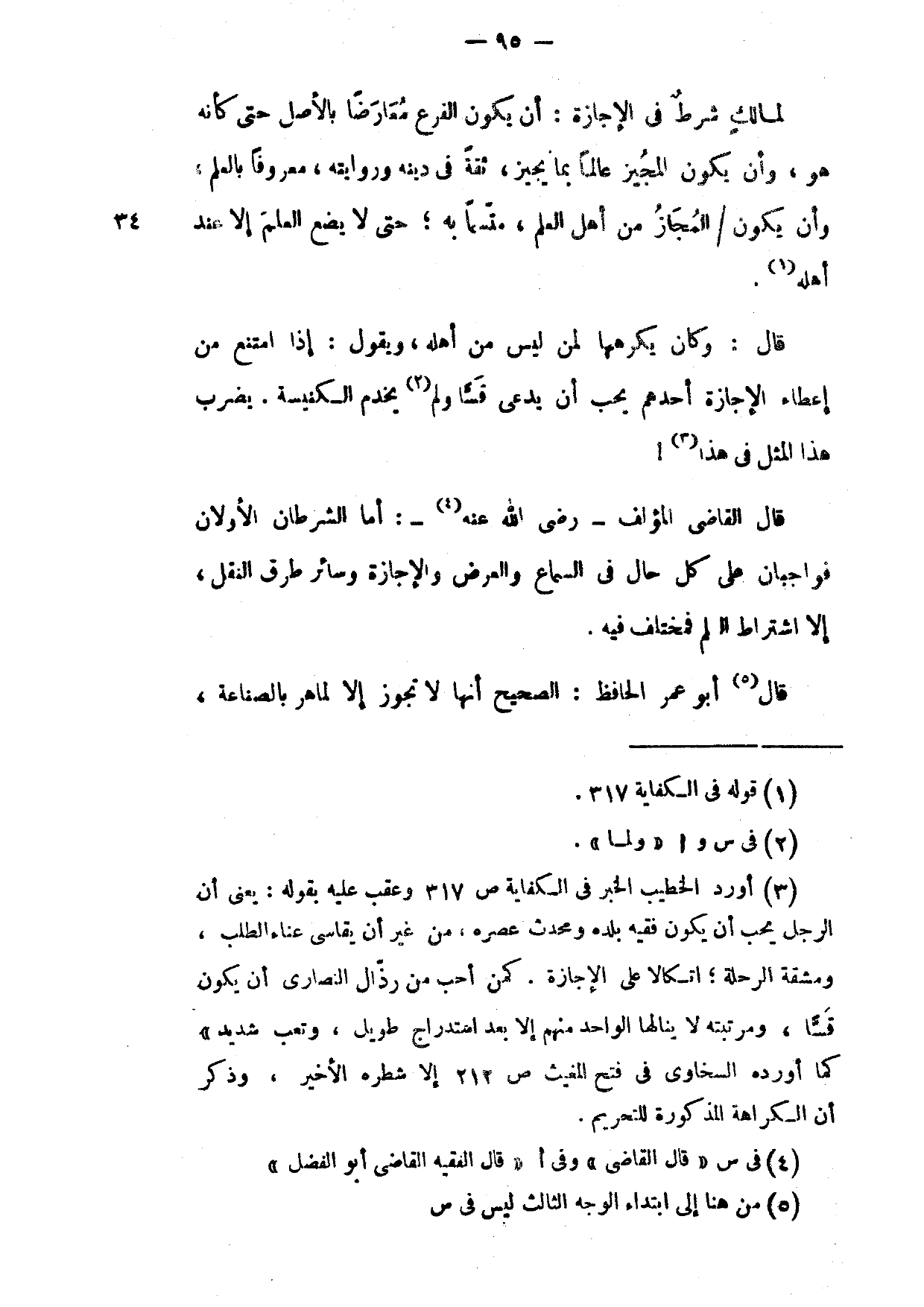 قَالَ الْقَاضِي الْمُؤَلِفُ رَضِيَ اللَّهُ عَنْهُ أَمَّا الشَّرْطَانِ الْأَوَّلَانِ فَوَاجِبَانِ عَلَى كُلِّ حَالٍ فِي السَّمَاعِ وَالْعَرْضِ وَالْإِجَازَةِ وَسَائِرِ طُرُقِ النَّقْلِ إِلَّا اشْتِرَاطَ الْعِلْمِ فَمُخْتَلَفٌ فِيهِ