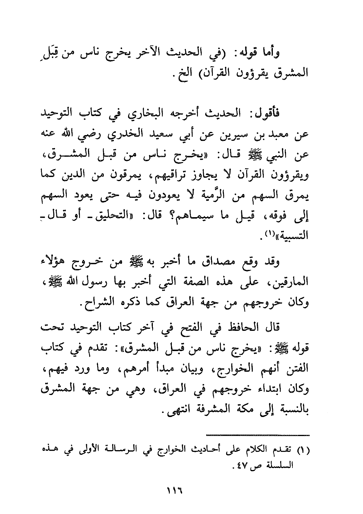 1 تقدم الكلام على أحاديث الخوارج في الرسالة الأولى في هذه السلسلة ص47.
