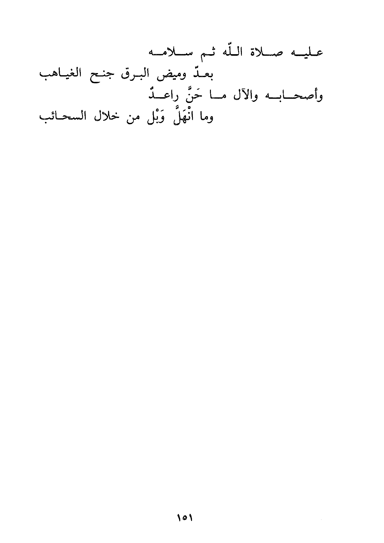 وأصحابه والآل ما حن راعد ... وما انهل وبل من خلال السحائب