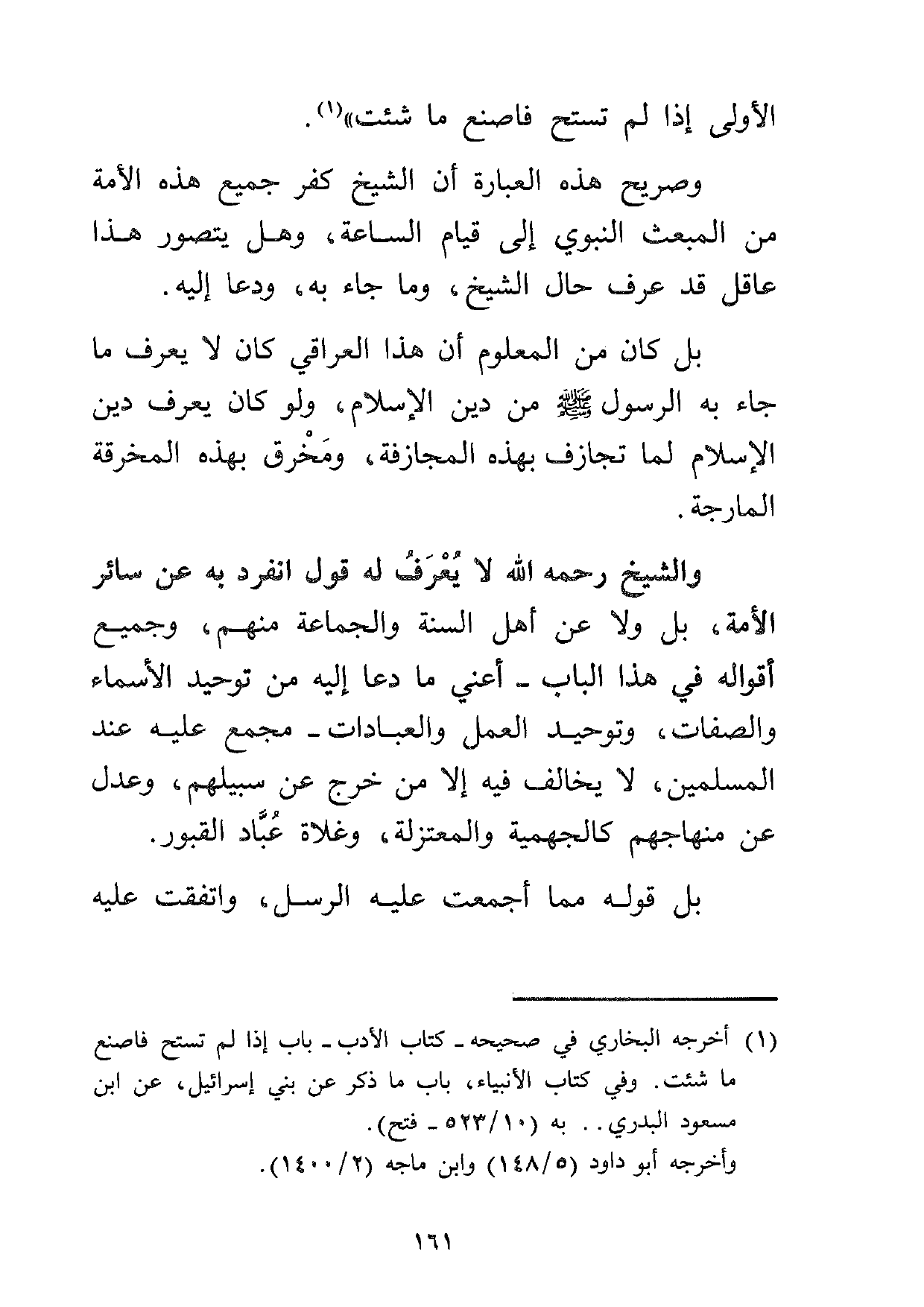 وصريح هذه العبارة أن الشيخ كفر جميع هذه الأمة من المبعث النبوي إلى قيام الساعة، وهل يتصور هذا عاقل قد عرف حال الشيخ، وما جاء به، ودعا إليه.