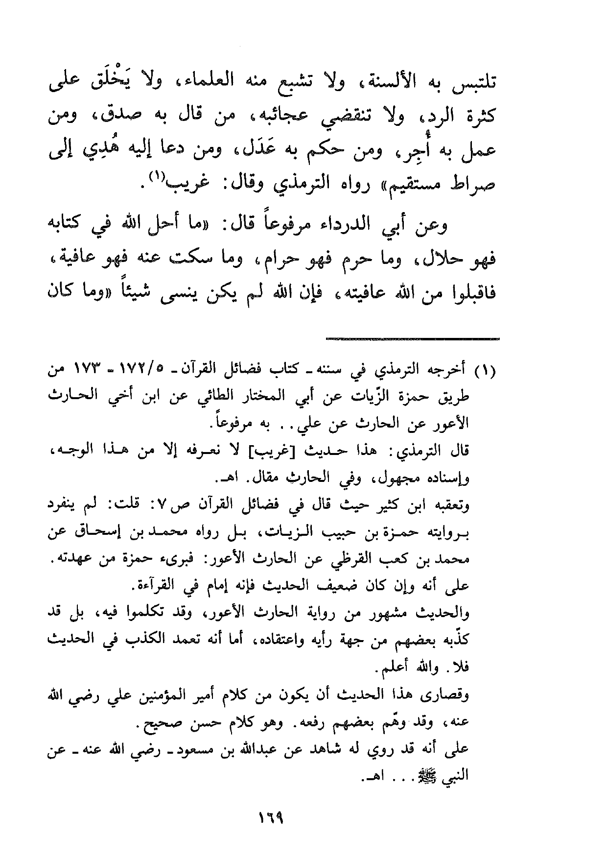 1 أخرجه الترمذي في سننه –كتاب فضائل القرآن- 5/172-173 من طريق حمزة الزيات عن أبي المختار الطائي عن ابن أخي الحارث الأعور عن الحارث عن علي ... به مرفوعاً.