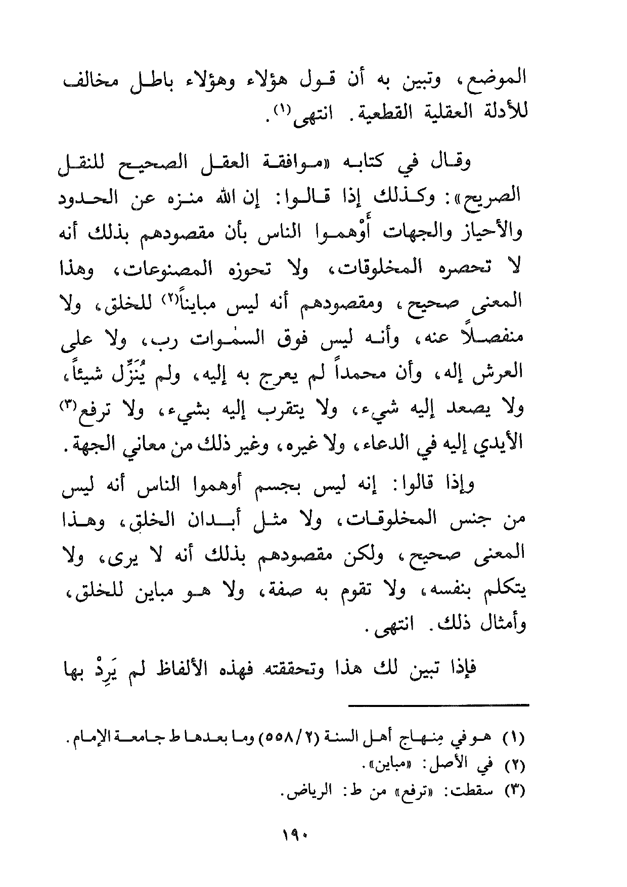 الموضع، وتبين به أن قول هؤلاء وهؤلاء باطل مخالف للأدلة العقلية القطعية. انتهى1.