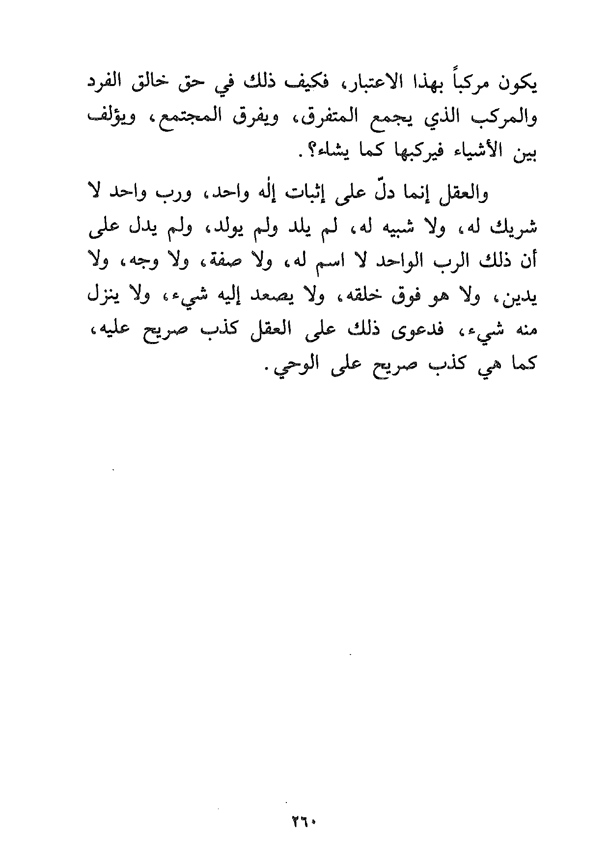 يكون مركباً بهذا الاعتبار، فكيف ذلك في حق خالق الفرد والمركب الذي يجمع المتفرق، ويفرق المجتمع، ويؤلف بين الأشياء فيركبها كما يشاء؟