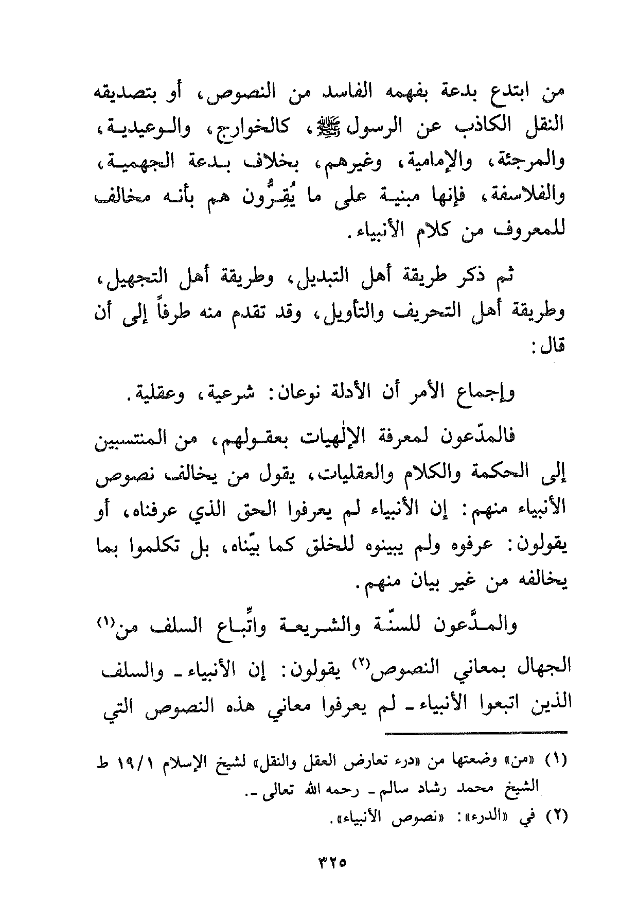 والمدعون للسنة والشريعة واتباع السلف من1 الجهال بمعانبي النصوص2 يقولون: إن الأنبياء –والسلف الذين اتبعوا الأنبياء- لم يعرفوا معاني هذه النصوص التي