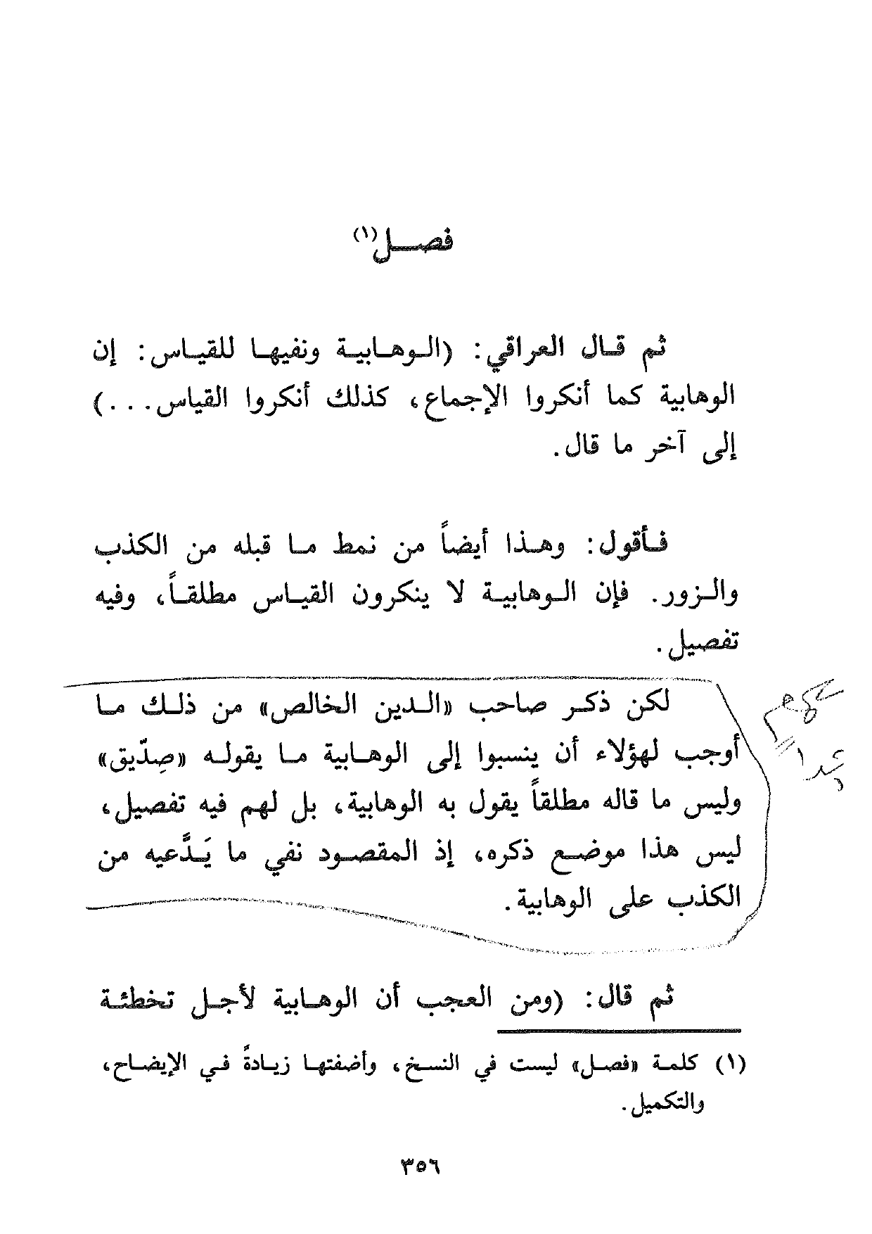 ثم قال العراقي: (الوهابية ونفيها للقياس: إن الوهابية كما أنكروا الإجماع، كذلك أنكروا القياس ... ) إلى آخر ما قال.