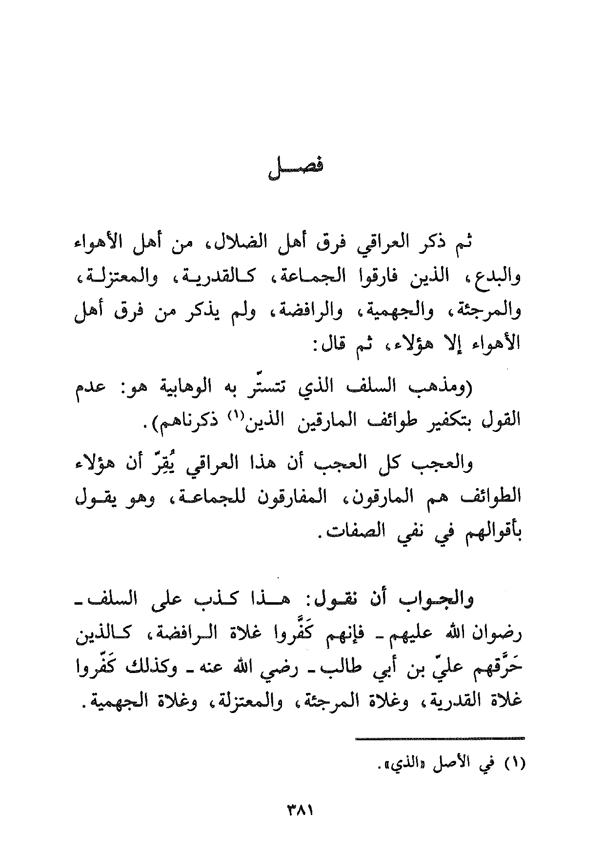 (ومذهب السلف الذي تتستر به الوهابية هو: عدم القول بتكفير طوائف المارقين الذين1 ذكرناهم) .