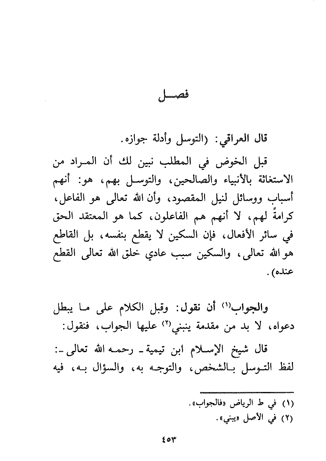قبل الخوض في المطلب نبين لك أن المراد من الاستغاثة بالأنبياء والصالحين، والتوسل بهم، هو: أنهم أسباب ووسائل لنيل المقصود، وأن الله تعالى هو الفاعل، كرامة لهم لا أنهم هم الفاعلون، كما هو المعتقد الحق في سائر الأفعال، فإن السكين لا يقطع بنفسه، بل القاطع هو الله تعالى، والسكين سبب عادي خلق الله تعالى القطع عنده) .
