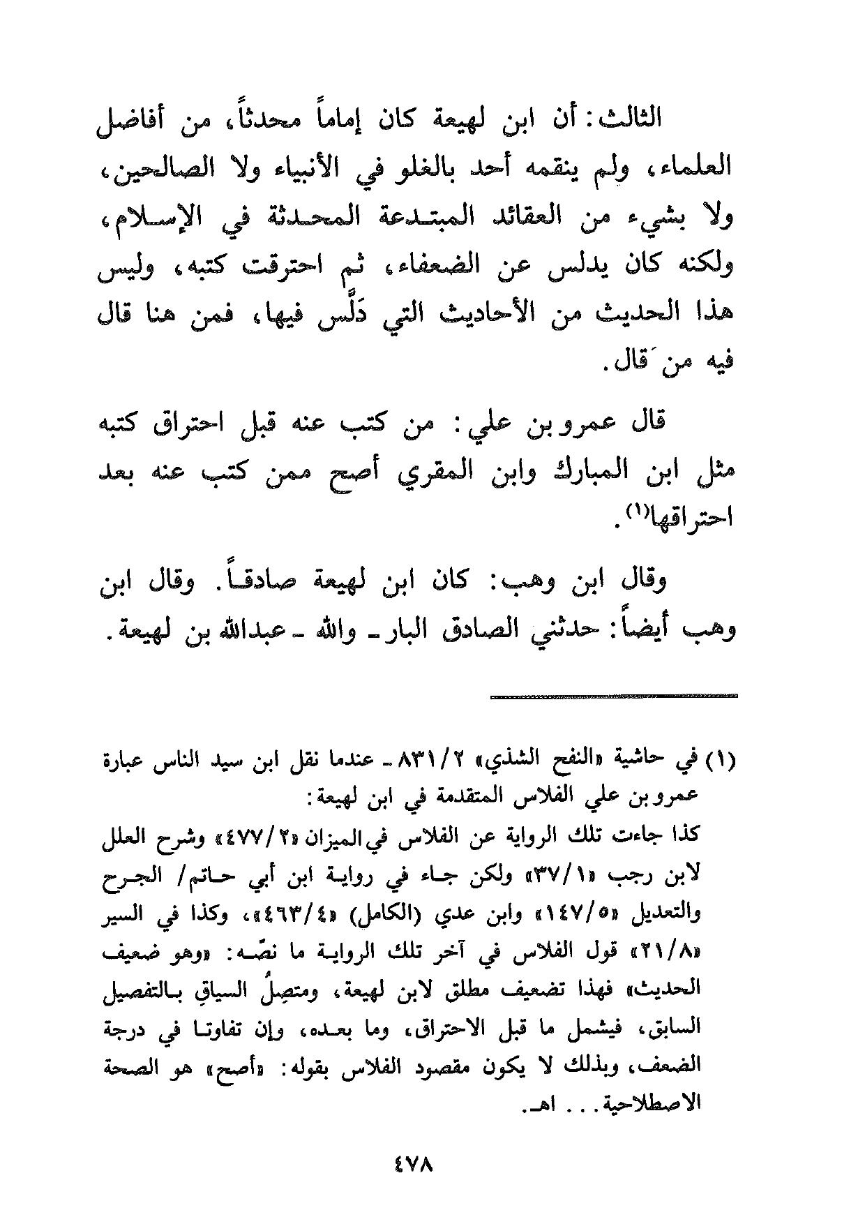 1 في حاشية "النفح الشذي" 2/831 –عندما نقل ابن سيد الناس عبارة عمرو بن علي الفلاس المتقدمة في ابن لهيعة: