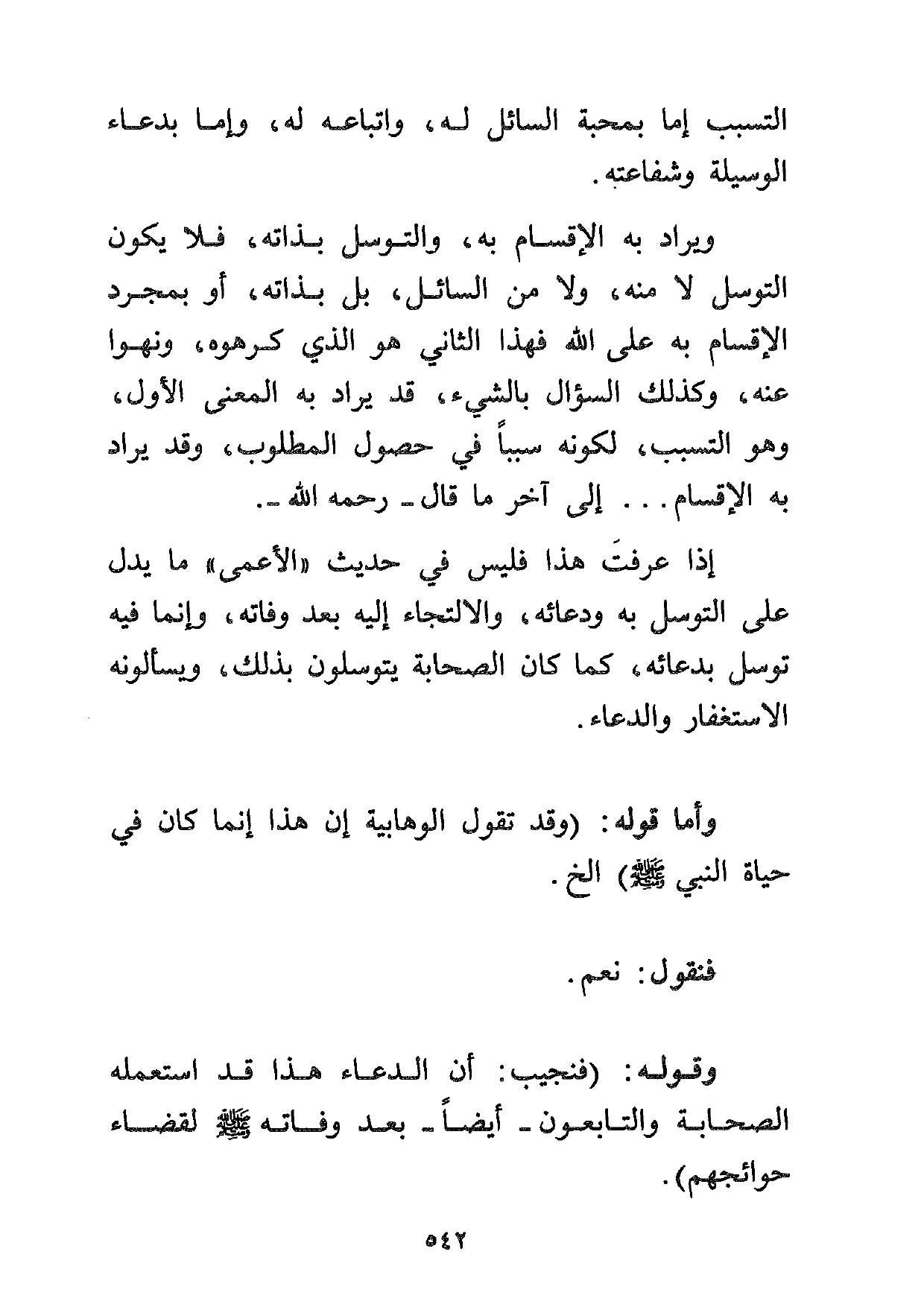 إذا عرفت هذا فليس في حديث "الأعمى" ما يدل على التوسل به ودعائه، والالتجاء إليه بعد وفاته، وإنما فيه توسل بدعائه، كما كان الصحابة يتوسلون بذلك، ويسألونه الاستغفار والدعاء.