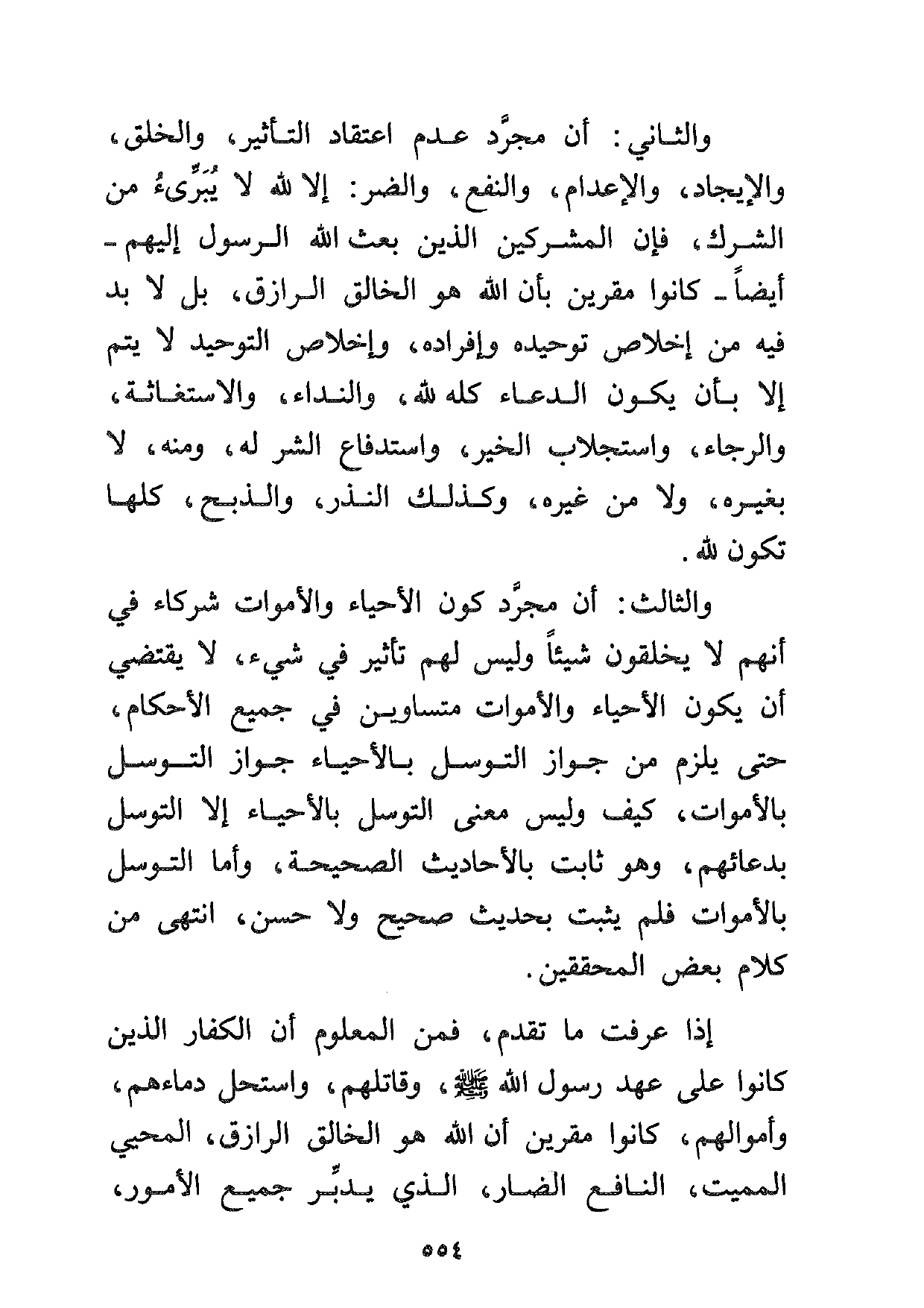 إذا عرفت ما تقدم، فمن المعلوم أن الكفار الذين كانوا على عهد رسول الله صلى الله عليه وسلم، وقاتلهم، واستحل دماءهم، وأموالهم، كانوا مقرين أن الله هو الخالق الرازق، المحيي المميت، النافع الضار، الذي يدبر جميع الأمور،