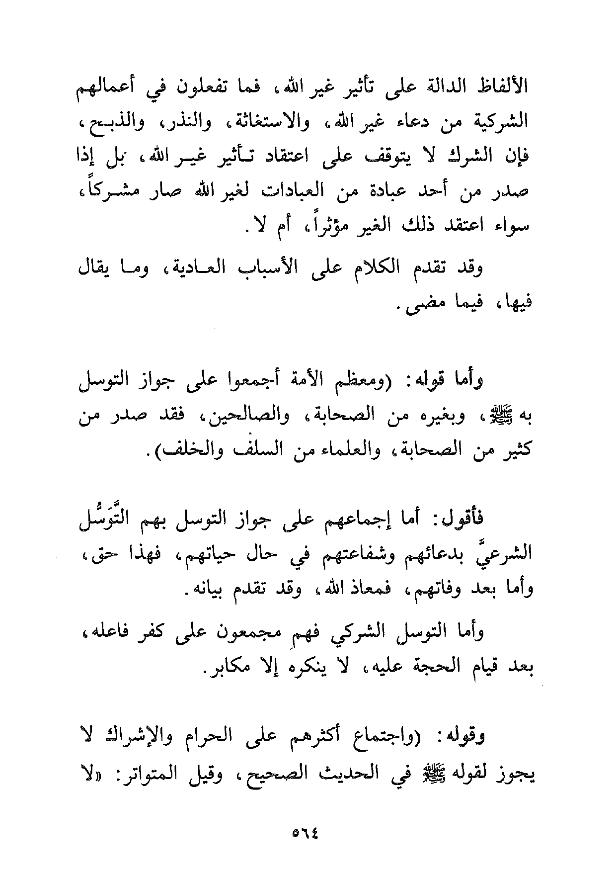 الألفاظ الدالة على تأثير غير الله، فما تفعلون في أعمالهم الشركية من دعاء غير الله، والاستغاثة والنذر والذبح، فإن الشرك لا يتوقف على اعتقاد تأثير غير الله، بل إذا صدر من أحد عبادة من العبادات لغير الله صار مشركاً، سواء اعتقد ذلك الغير مؤثراً أم لا.