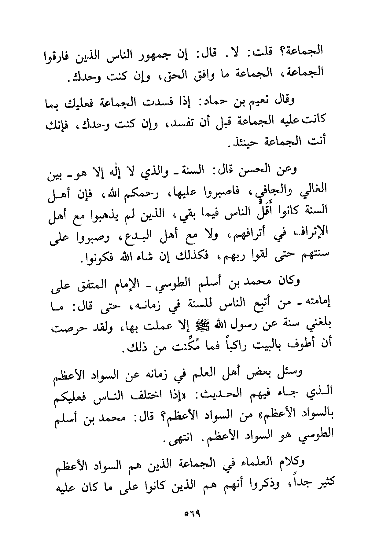 وكلام العلماء في الجماعة الذين هم السواد الأعظم كثير جداً، وذكروا أنهم هم الذين كانوا على ما كان عليه