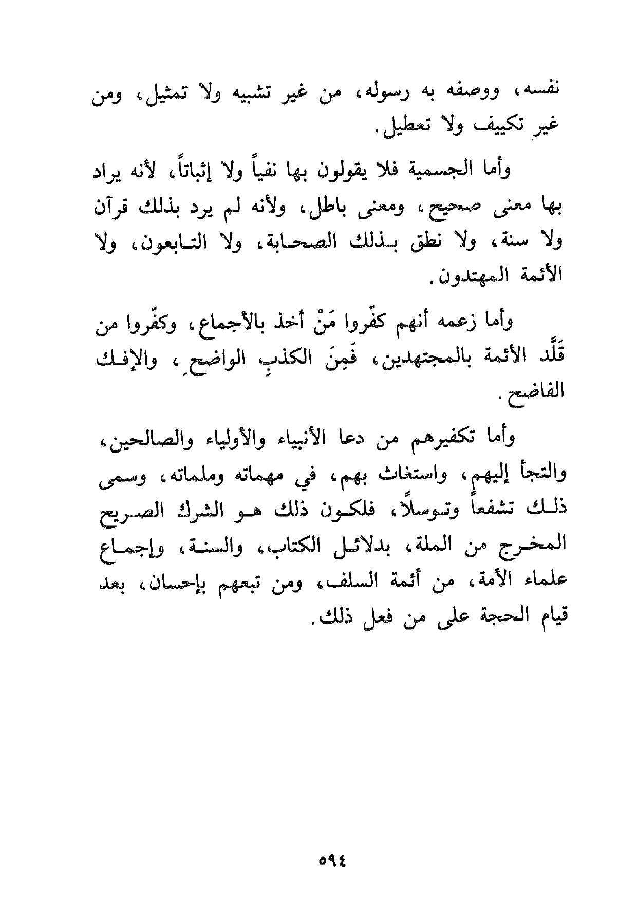 نفسه، ووصفه به رسوله، من غير تشبيه ولا تمثيل، ومن غير تكييف ولا تعطيل.