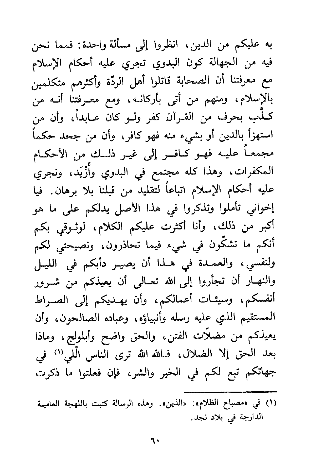 1 في مصباح الظلام: "الذين". وهذه الرسالة كتبت باللهجة العامية الدارجة في بلاد نجد.