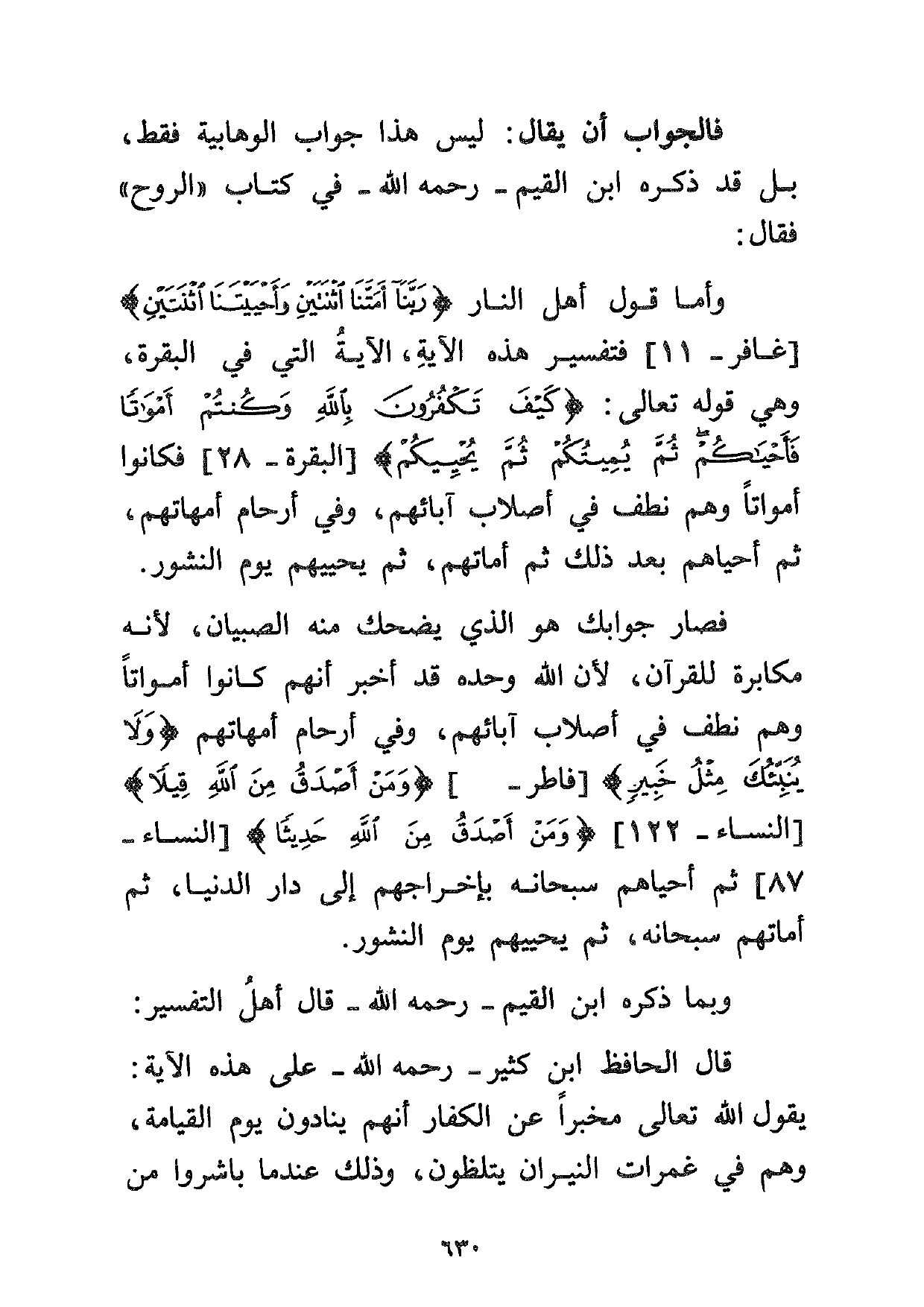 فالجواب أن يقال: ليس هذا جواب الوهابية فقط، بل قد ذكره ابن القيم رحمه الله في كتاب "الروح" فقال: