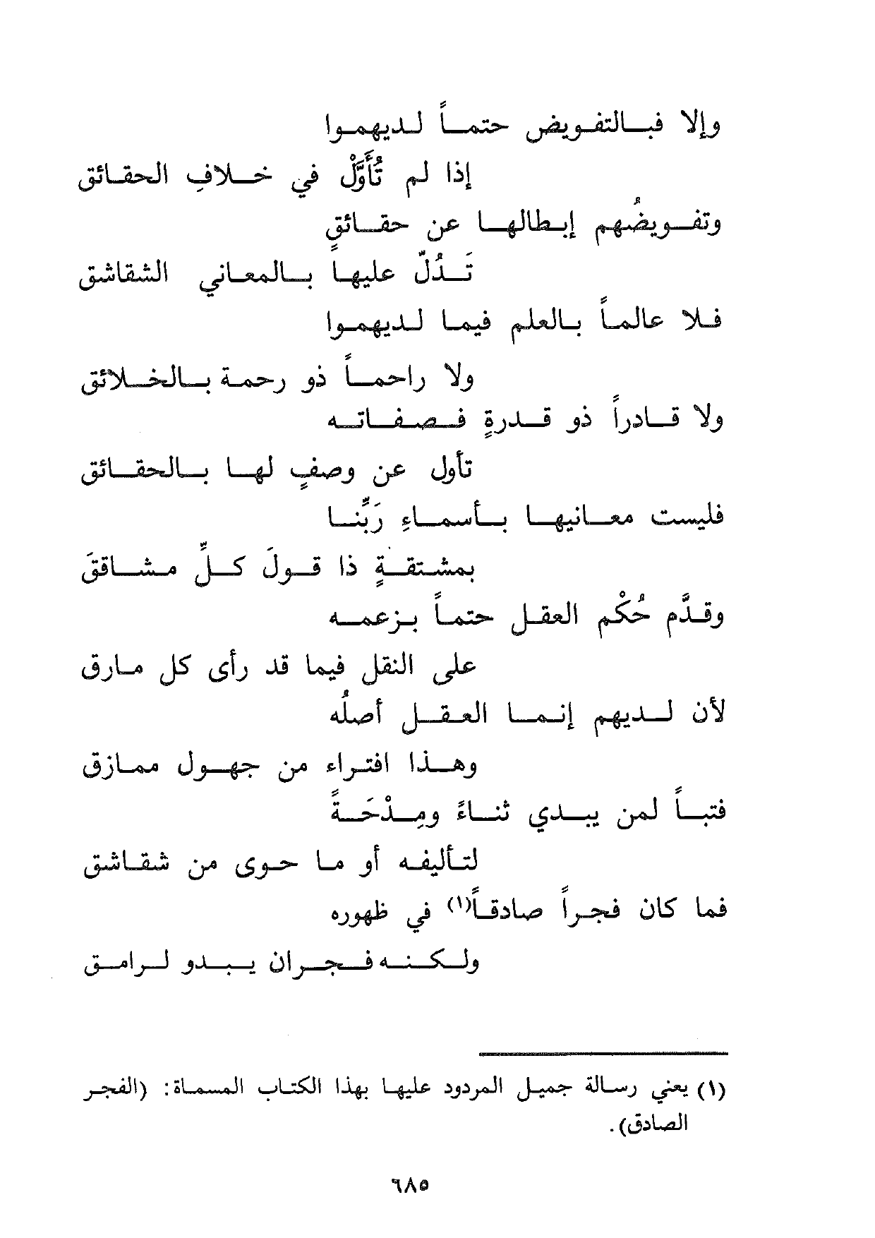 1 يعني رسالة جميل المردود عليها بهذا الكتاب المسماة: (الفجر الصادق) .