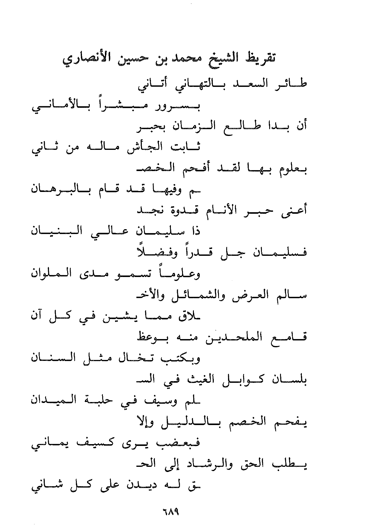 تقريظ الشيخ محمد بن حسين الأنصاري