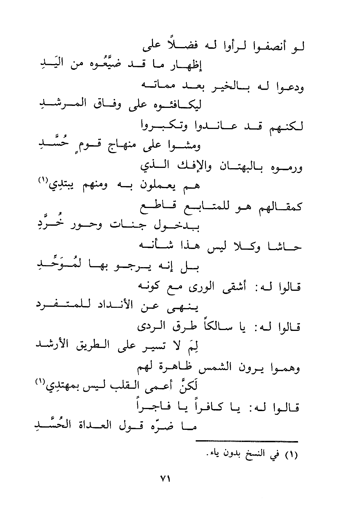 لكنهم قد عاندوا وتكبروا ... ومشوا على منهاج قوم حسّدِ