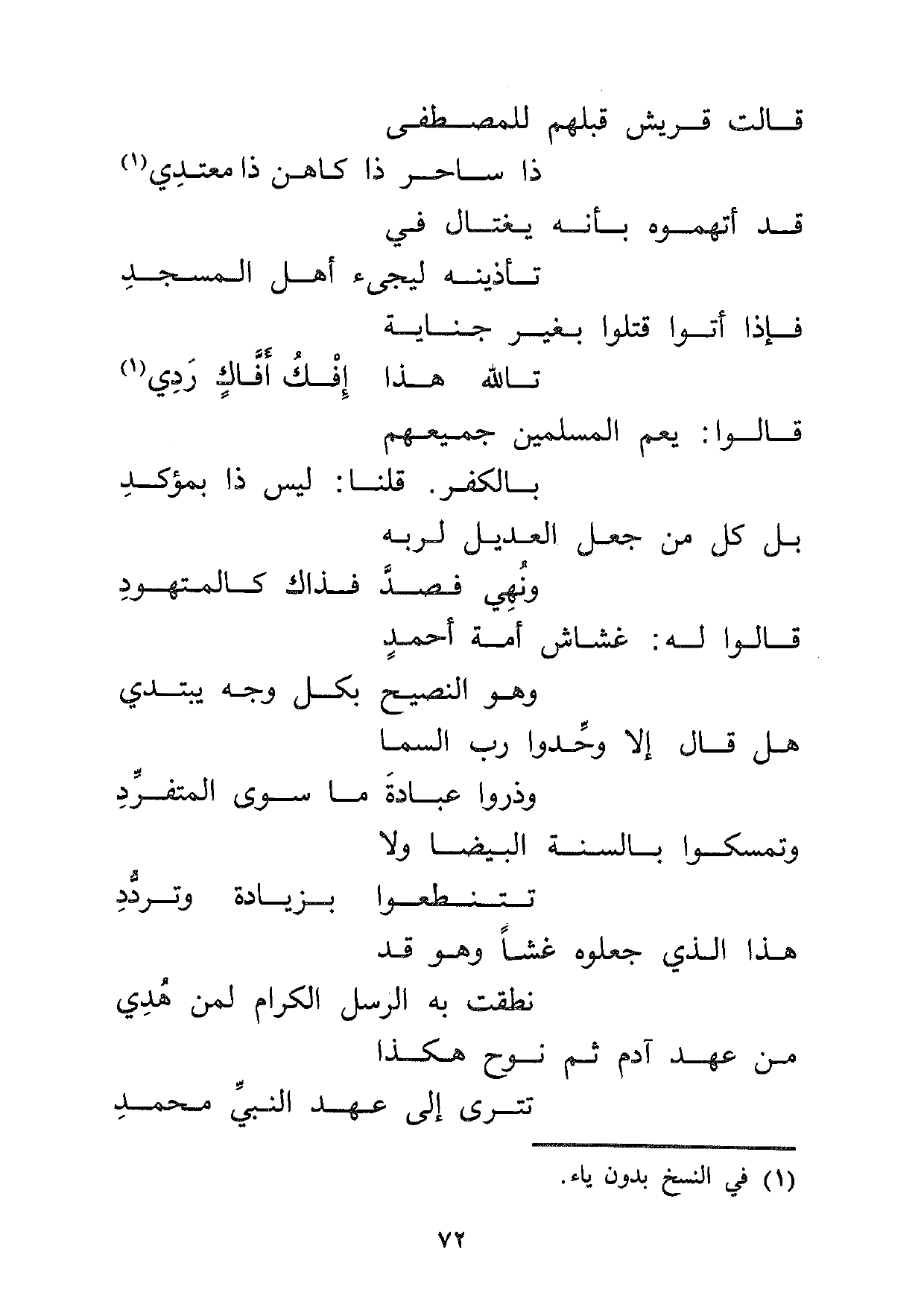 قالت قريش قبلهم للمصطفى ... ذا ساحر ذا كاهن ذا معتدي1