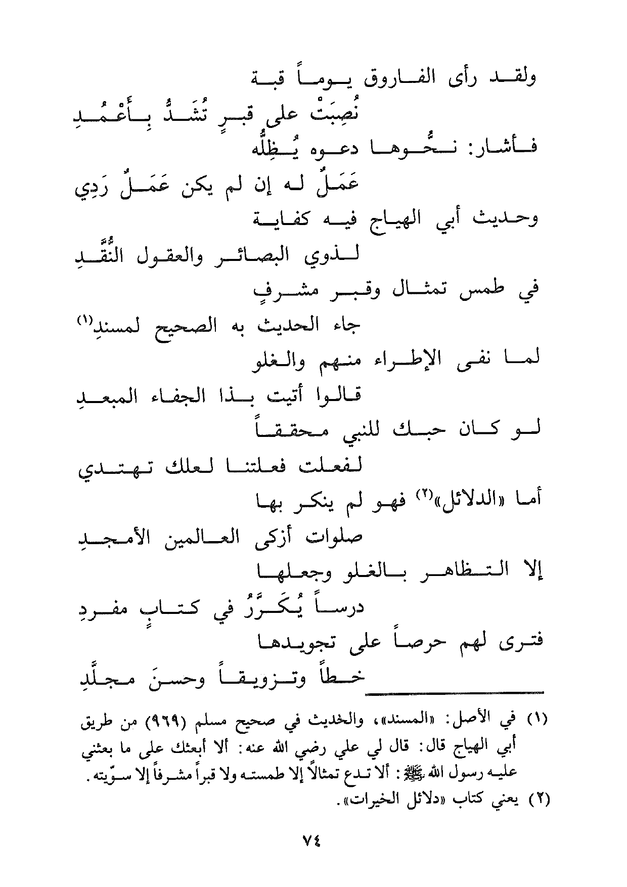 في طمس تمثال وقبر مشرفٍ ... جاء الحديث به الصحيح لمسندِ1