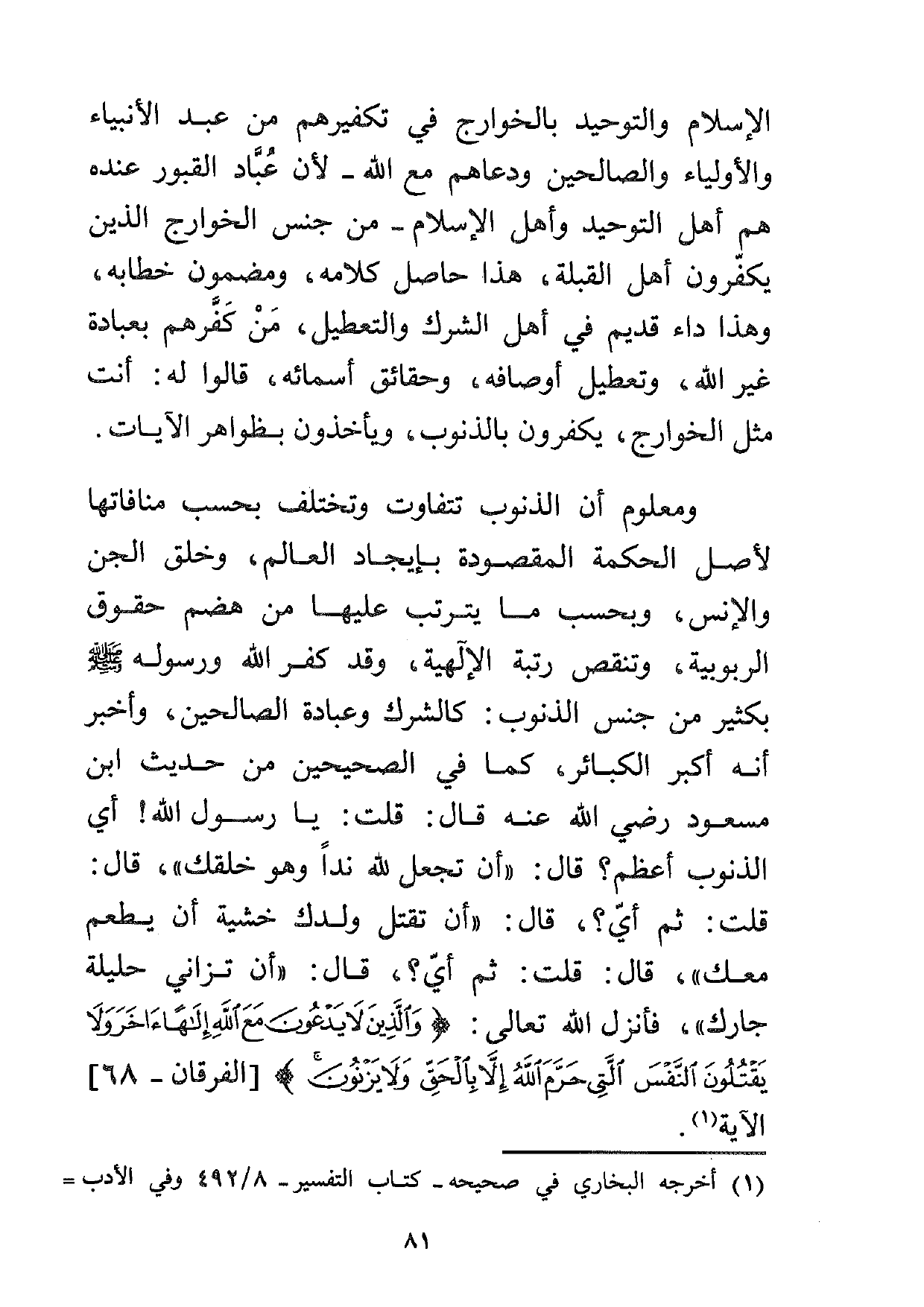 1 أخرجه البخاري في صحيحه –كتاب التفسير- 8/492 وفي الأدب 10/433 وفي الحدود 12/114، وفي التوحيد 13/491، ومسلم في صحيحه –كتاب الإيمان- 1/90-91.