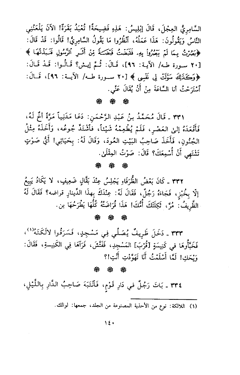 333 - دخل ظريفٌ يصلّي في مسجدٍ، فسرقوا لالكته، فخبّأوها في كنيسةٍ [قرب] المسجد، ففتّش، فرآها في الكنيسة، فقال: ويحك} لمّا أسلمت أنا تهودت أنت! ؟
